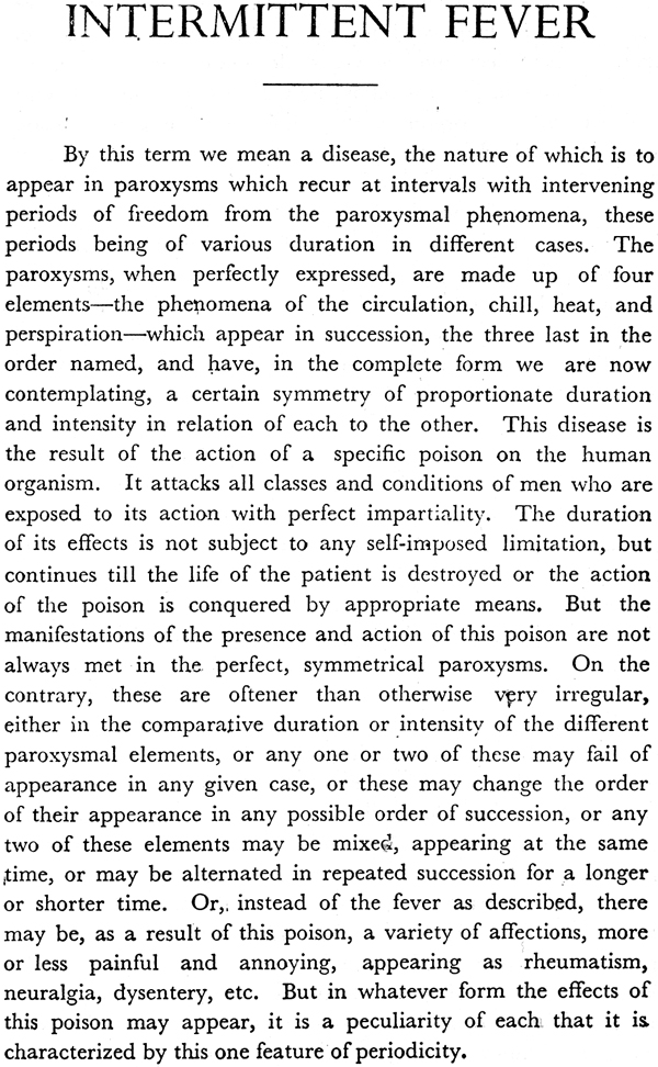 The work is reprinted because many, who had seen it, desired to posses a copy and because we desire to afford the lovers of Homoeopathy an opportunity to disprove that "Ague and fever cannot be cured homoeopathically."