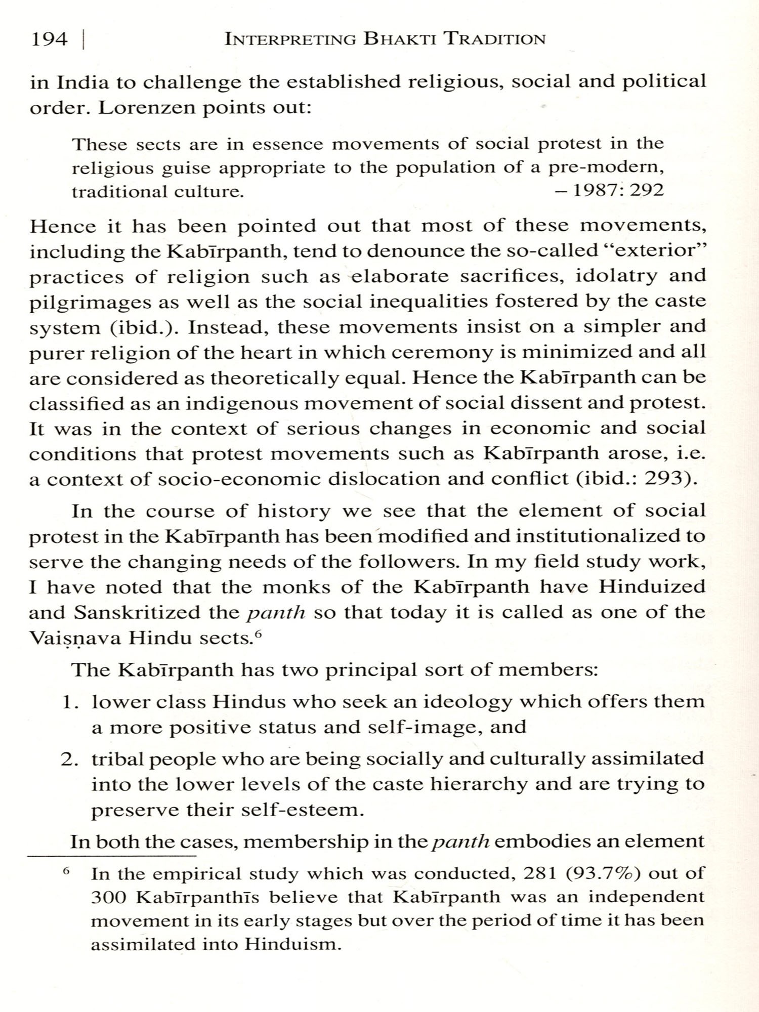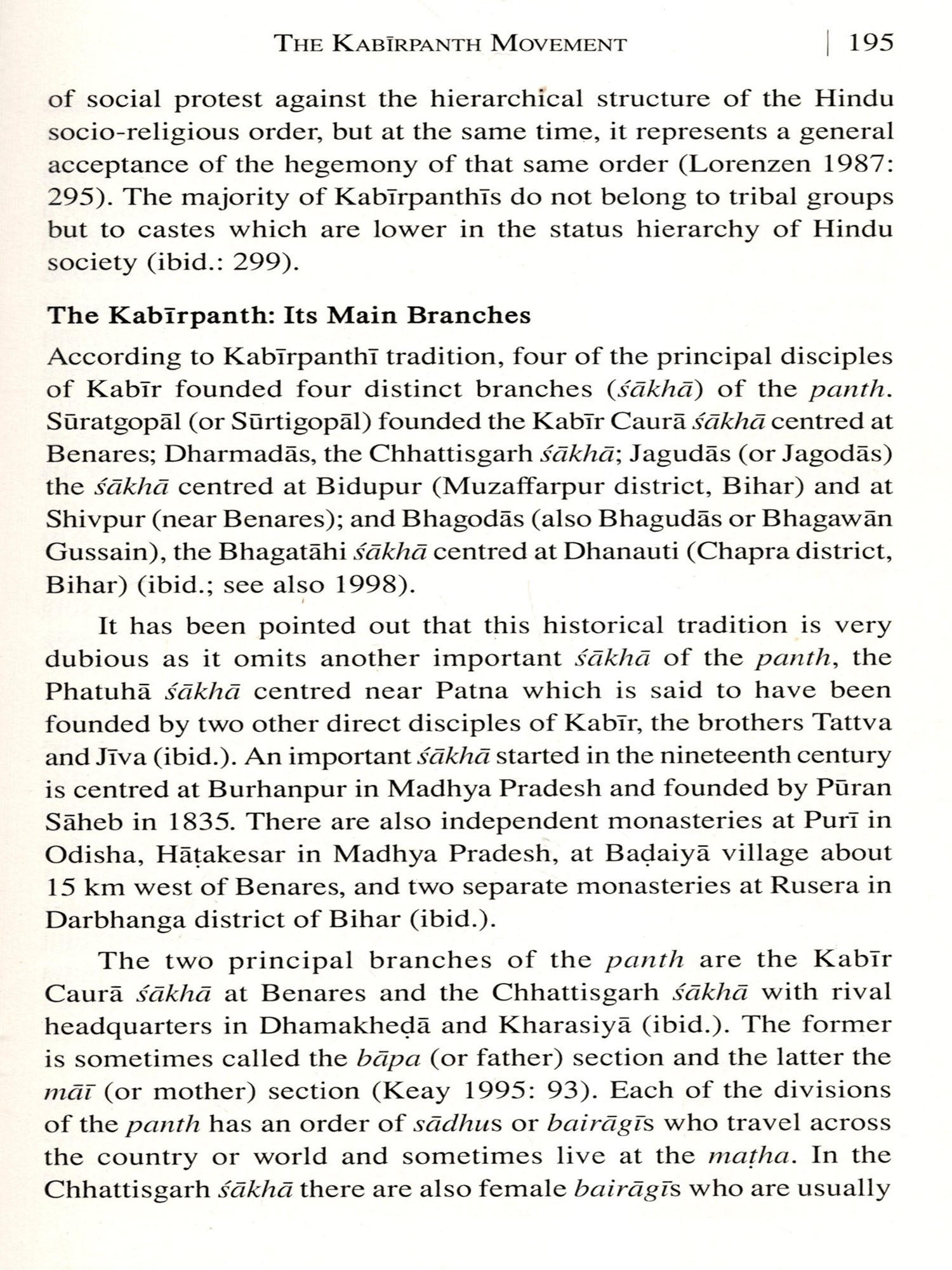 I also wish to thank the Acarya of the Benares Kabir Caura Mutha Sant Vivekdas Saheb, the former Acarya Gangasaran Sastri and the Mahant of the Magahar Mutt Sant Vichardas Saheb as well as all the monks especially Umeshdasji, Bhagirathidasji, Arvinddasji and Devendradasji and the lay members of the Kabir Caura Mutha Benares for taking me as one among them and extending a warm hospitality to me whenever I visited them.