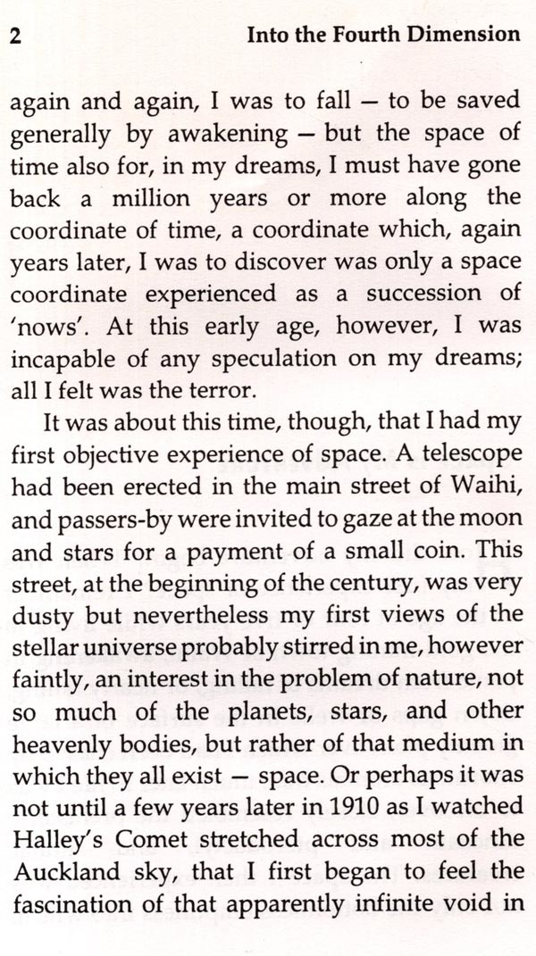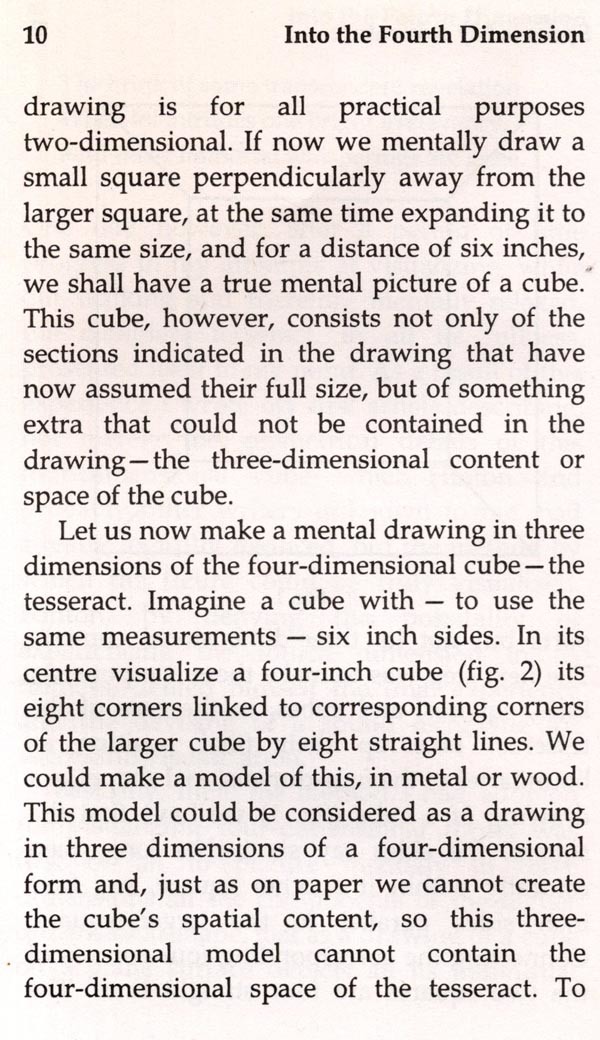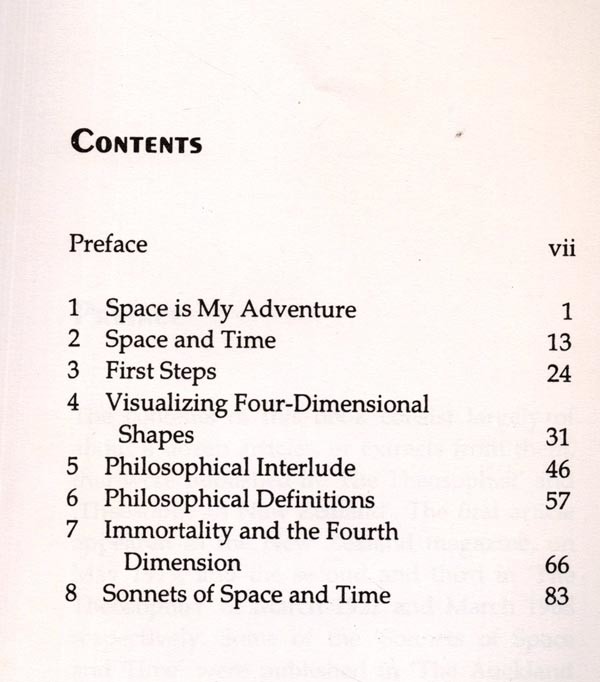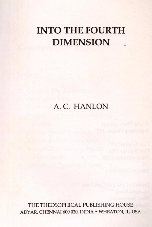 The contents of this book consist largely of about a dozen articles, or extracts from them, that were published in 'The Theosophisť and 'Theosophy in New Zealand'. The first article appeared in the New Zealand magazine, on May 1919, and the second and third in 'The Theosophisť of March 1922 and March 1968 respectively. Some of the 'Sonnets of Space and Time' were published in 'The Auckland Star' 1930 to 1933, and two in 'Contemporary Poets 1974' by the Regency Press, London. The famous British mathematician, Bertrand Russell, once wrote: 'Mathematics rightly viewed possesses supreme beauty-a beauty cold and austere, like that of sculpture. The true spirit of delight, the exaltation, the sense of being more than man, which is the touchstone of the highest excellence, is to be found in mathematics as surely as in poetry.' This exaltation will surely come to those who succeed in visualizing a four-dimensional figure for, in this act, there is not merely the creation of a figure in four dimensions, but the experiencing of a spatial power not to be known while we are limited to a space of three dimensions. It is probable that the creative power of genius in art, music, literature, and in other fields of original activity, derives its inspiration from higher dimensional space. To visualize the simplest four-dimensional form is to experience something of this power for, by this act, we have taken the first ste 'Into the Fourth Dimension.