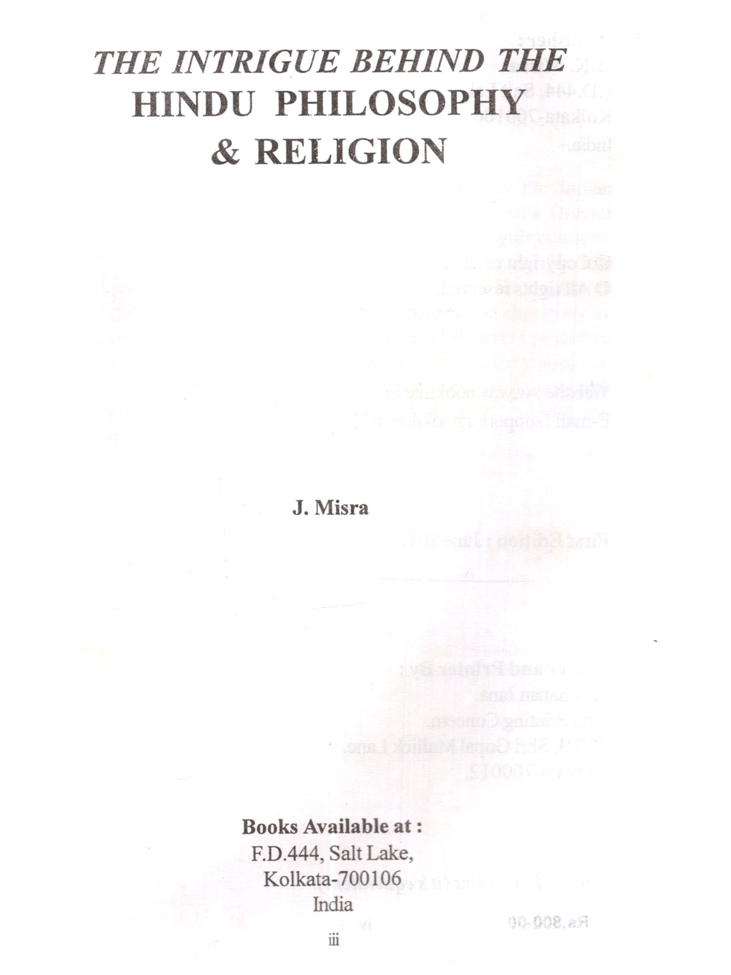 The author Mr. J.Misra (Jaladindu Misra) was in the Indian Administrative Service for about 36 years. He was District Magistrate in several districts and thereafter in the higher echelons. He had visited the countries of Europe, U.S.A. etc. He had attended the 8th World Conference on Religion. He conducted several Commissions on Administrative matters, and also on socio-religious affairs. He used to write in the english dailies published from Kolkata and Chennai. He has written fourteen books of which three are in english language. The other two books in english language are (i) The Role of Mantras in Hindu Philosophy and Religion; and (ii) The 'Connubial Veil'.
