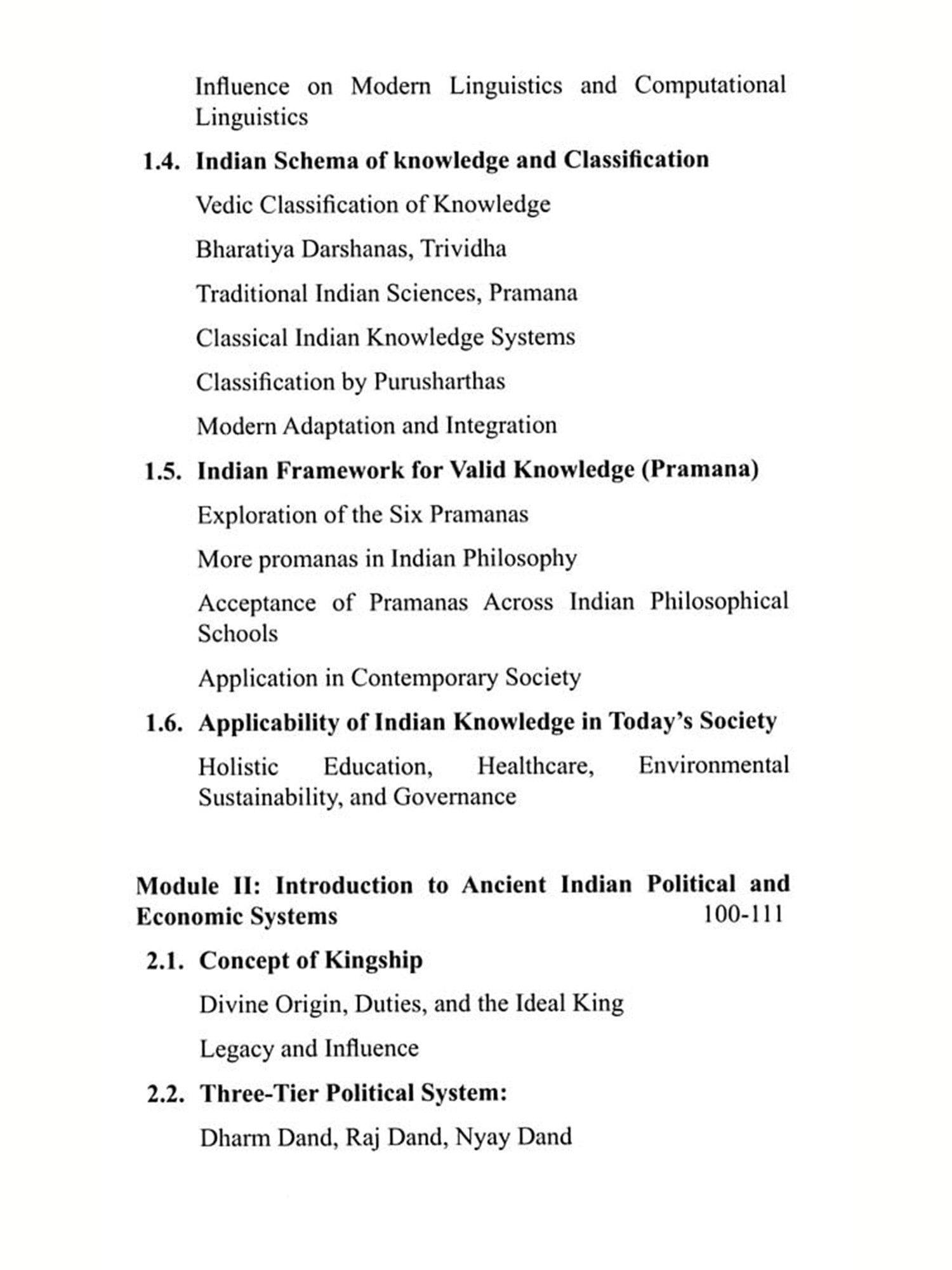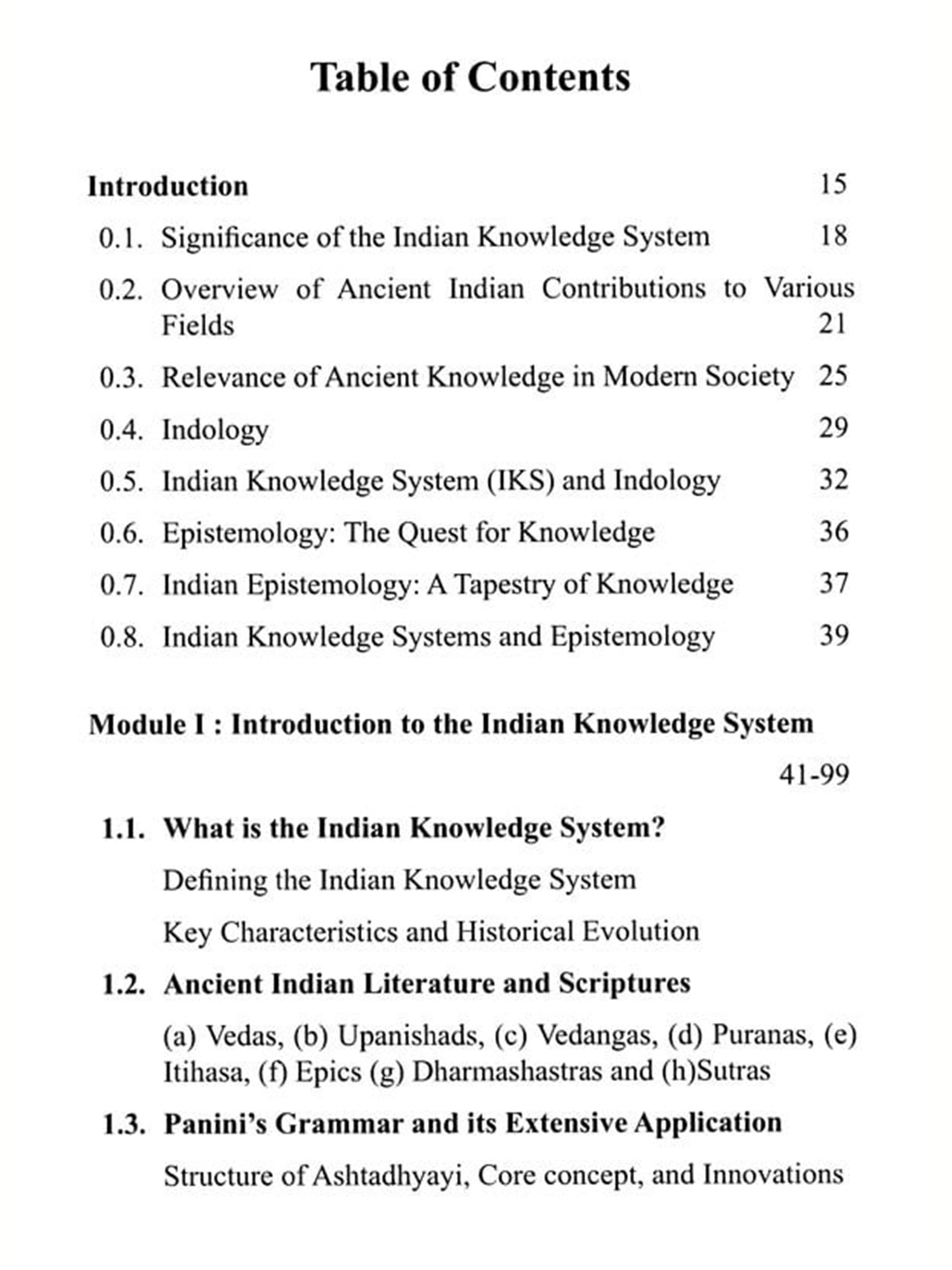 Module I introduces readers to the foundational texts and scriptures that form the backbone of Indian knowledge, alongside an in-depth analysis of Panini's grammar and the framework of valid knowledge (Pramana). It also reflects on the applicability of ancient wisdom in modern education, healthcare, governance, and environmental sustainability.
