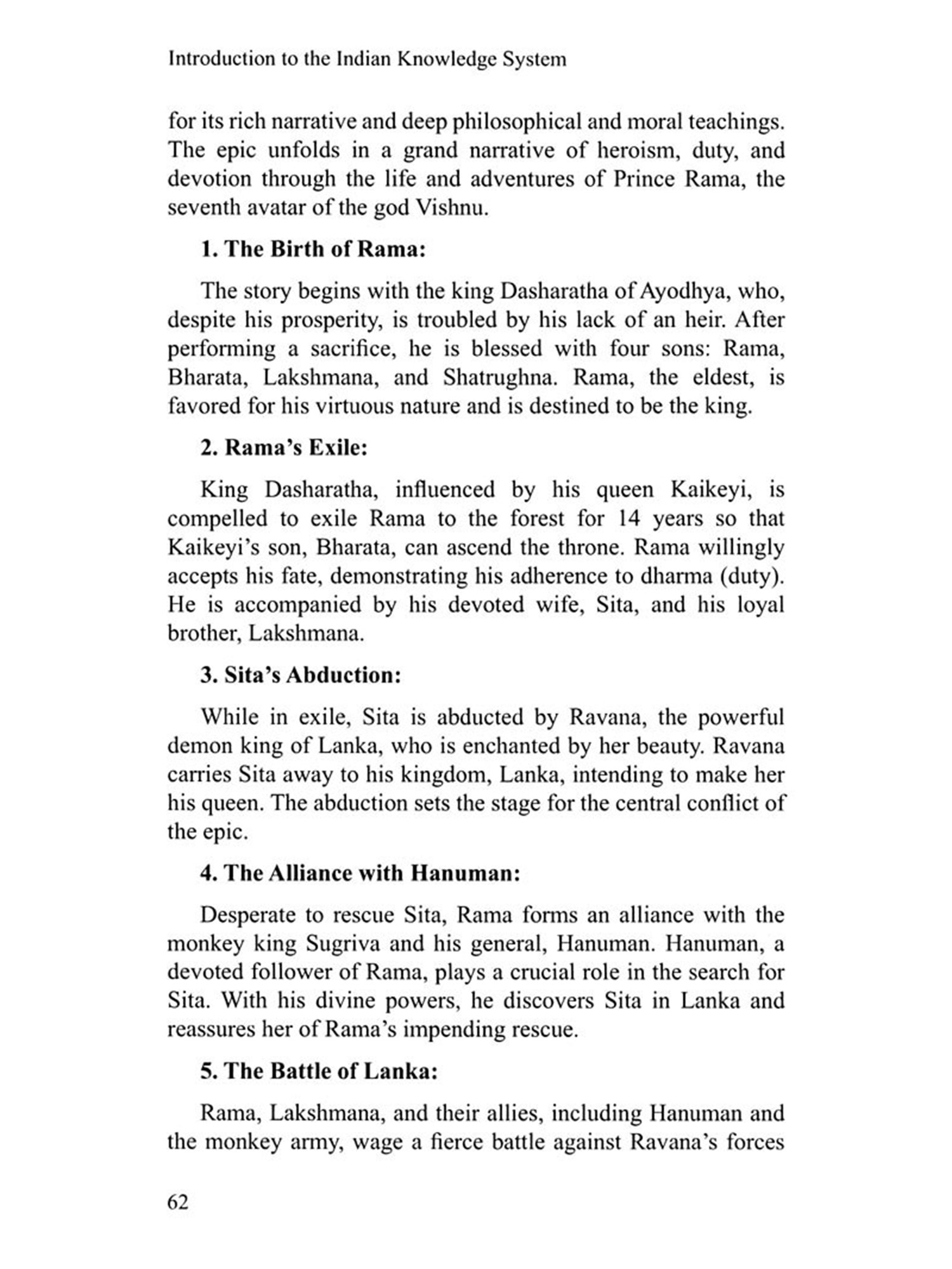 The Introduction to the Indian Knowledge System is a humble attempt to present a comprehensive and insightful overview of one of the most ancient and profound bodies of knowledge that has shaped human civilization. This book aims to explore the vast expanse of the Indian Knowledge System, highlighting its philosophical depth, scientific achievements, and cultural richness. The purpose of this work is to provide readers with an understanding of the timeless wisdom embedded in ancient Indian literature, politics, economics, art, mathematics, astronomy, and health sciences. By delving into these topics, the book seeks to connect the past with the present, showing how these ancient principles remain relevant and offer solutions to contemporary challenges. This journey into the Indian Knowledge System is not merely a historical exploration but an invitation to engage with a living tradition that continues to influence global thought, values, and practices.