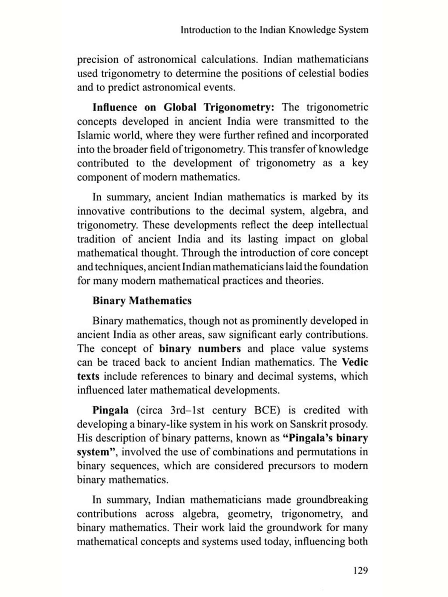 This book aims to serve as an introduction to this vast and multifaceted knowledge system, guiding readers through its key components and demonstrating its relevance in today's world. Whether it is the ethical and spiritual insights of Indian philosophy, the architectural marvels of ancient temples, or the pioneering work in mathematics and astronomy, each aspect of the Indian Knowledge System carries lessons that resonate beyond time and place.