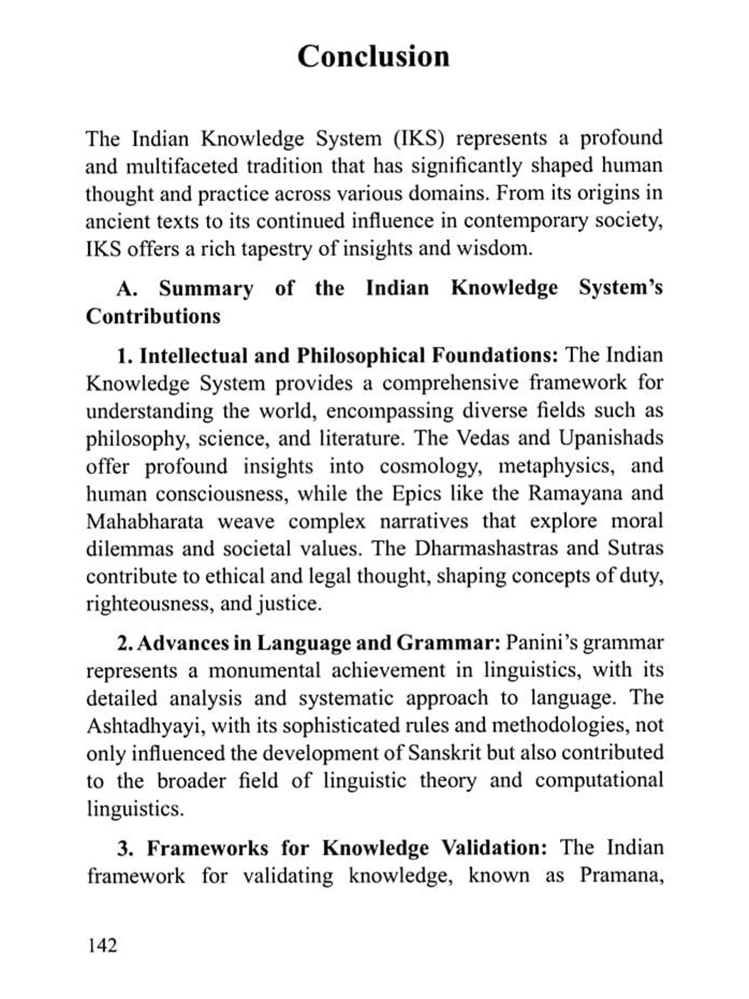 The book concludes with a reflective synthesis of how the Indian Knowledge System has contributed to the global intellectual and cultural landscape. A glossary and extensive references section further enhance the utility of this work, making it a valuable resource for deeper study and exploration.