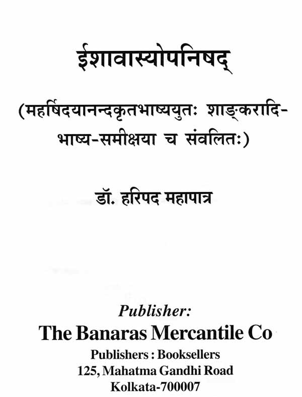ईशावास्योपनिषद्: Ishavasyopanisad (with Commentaries by Maharshi Dayananda and Compiled by Commentaries and Reviews by Shankara and Others)
