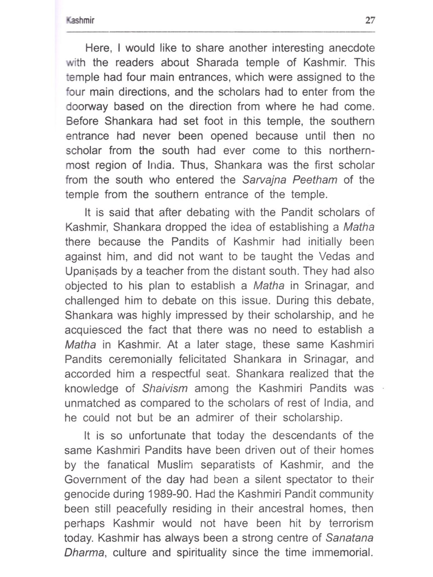 The advent of Jagadguru Adi Shankaracharya coincided with a period when Sanatana Dharma, a religion based on the Vedas and the Upanisads, was in a state of decline in India. King Ashoka and his successors had adopted Buddhism as their personal faith, and this had a direct impact on the followers of Sanatana Dharma. However, even though some scholars may be of this opinion, but I would like to clarify that the propagation of Buddhism by King Ashoka and his successors should not be regarded as the sole reason for the decline of Sanatana Dharma. There were several other factors as well that contributed to this. The fact is that while a vast majority of the population, including the rulers and most of their subjects, had accepted Buddhism, it is also true that Sanatana Dharma was plagued by undue ritualism, superstition, casteism, and so on during the rise of Buddhism. This was also one of the causes why several people turned away from Sanatana Dharma, and adopted Buddhism, which was thought to be more simple and straightforward, with its emphasis on non-violence, charity, and liberation from sorrow, and as well as the rejection of elaborate rituals. Shankara took up the task of rejuvinating Sanatana Dharma, which was in a state of imminent decline, and he set out on a quest for religious revival- an initiative that remains unmatched in the history of the subcontinent till today. Shankara possessed an unparalleled personality, and his religious journeys were unique because it aimed to revive Sanatana Dharma and culture of Bharat i.e. India. It is a well-known fact that, in order to fulfill his objective, Shankara relied on dialogue and discussion (shastrarth), and he used this approach along with the scriptural tradition, to communicate the core teachings of Vedanta, primarily the doctrine of non-dualism (Advaita). During the course of his travels, Shankara came in contact with innumerable people, including kings, the common folk, wise men, religious leaders, and eminent scholars. All of them were impressed by Shankara's wisdom and deep knowledge of ancient scriptures and philosophy. Wherever he went, he left an everlasting impression of his scholarly knowledge. Shankara was basically a saint, who had adopted the path of knowledge (jnana maary). He proclaimed knowledge as the true path for liberation, sacrifice, and dispassion that were the main pillars of his religious quest. It is quite likely that Shankara was endowed with divine powers and energies, so one wonders as to how would it have been possible for an individual to accomplish so much in such a short life? It is believed that he had the blessings of Lord Shiva, and in fact, to this day, his devotees regard him as an incarnation of Lord Shiva. Shankara travelled and worked in the vast and fragmented domain of Bharatvarsha that stretched from Kashmir to Kanyakumari, from Dwarka to Jagannatha Puri and beyond. The cultural and religious unity of the land was lacking during Shankaracharya's time. Therefore, at a time when Buddhism, Jainism, and many other religious sects were spreading all across the country, Shankara used the vehicle of Vedanta-based Sanatana Dharma to unite them in a single thread to establish religious and cultural unity of Bharat. Shankara wasn't just an outstanding scholar, but also a reformer, visionary, humanitarian, and an able administrator. For instance, as a skilled administrator, Shankara formulated the organisational structure, as well as the rites and rituals of worship in all the four places where he had established the four Peethas for learning and study of Sanatana Dharma. Shankara also undertook the most arduous journeys to the four main pilgrimage sites (Chaar Dhaam Badrinath, Kedarnath, Yamunotri, and Gangotri), and there he appointed priests and sevaks and also made arrangements for the regular performance of Puja and related rites and rituals. Before the arrival of Shankara, such arrangements did not exist. In this way, Shankara carried out the significant task of elevating Sanatana Dharma and its cultural traditions in all the four corners of the country. According to an anecdote when Shankara reached Jagannatha Puri.