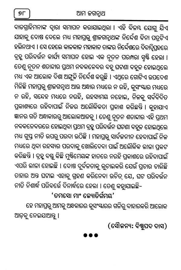 ପରଂବ୍ରହ୍ମ ଶ୍ରୀଜଗନ୍ନାଥ ও ନବକଳେ ନବର ଲୀଳା- Parambrahma Sri Jagannatha O Navakalebara Leela (Oriya)