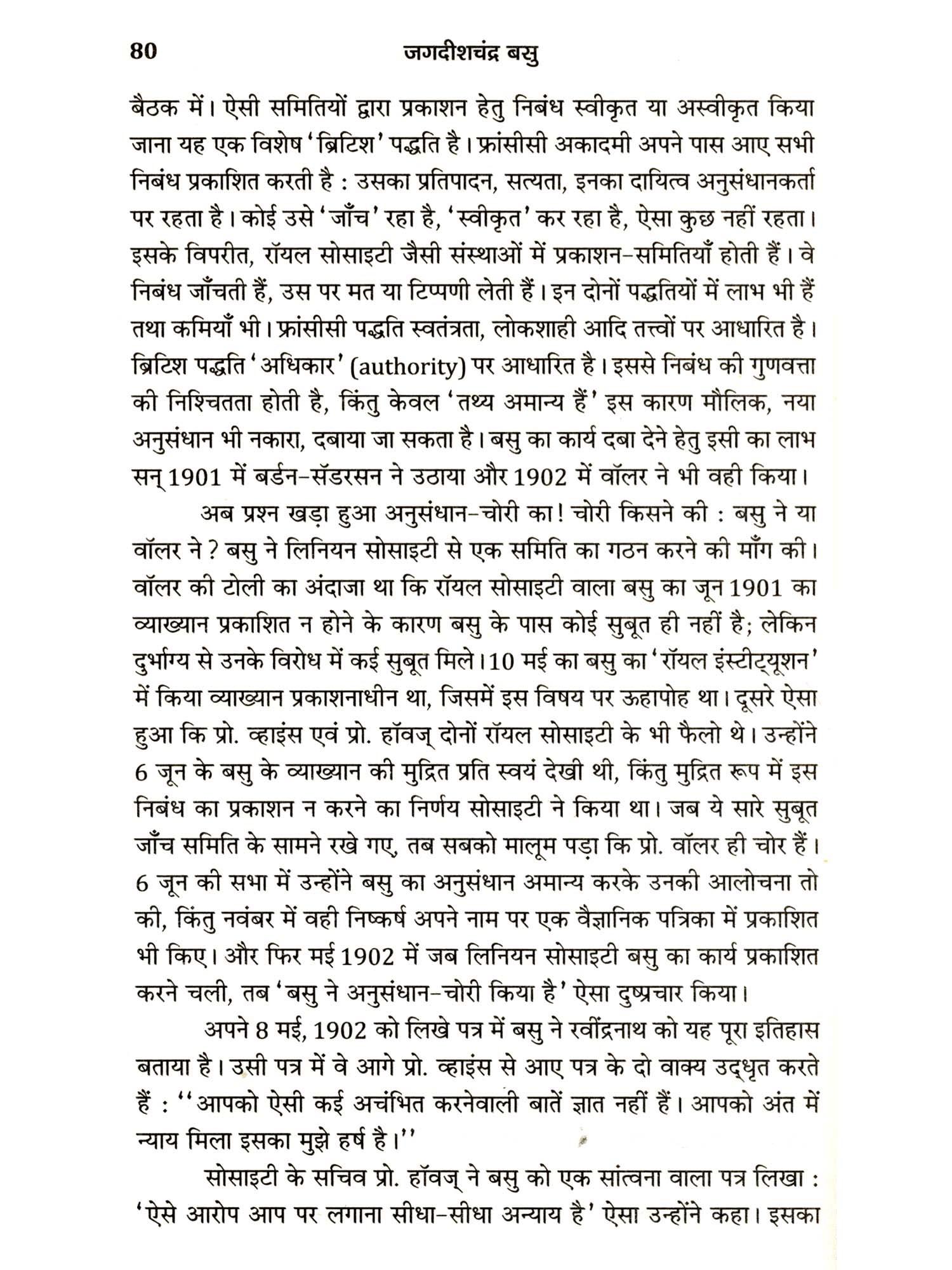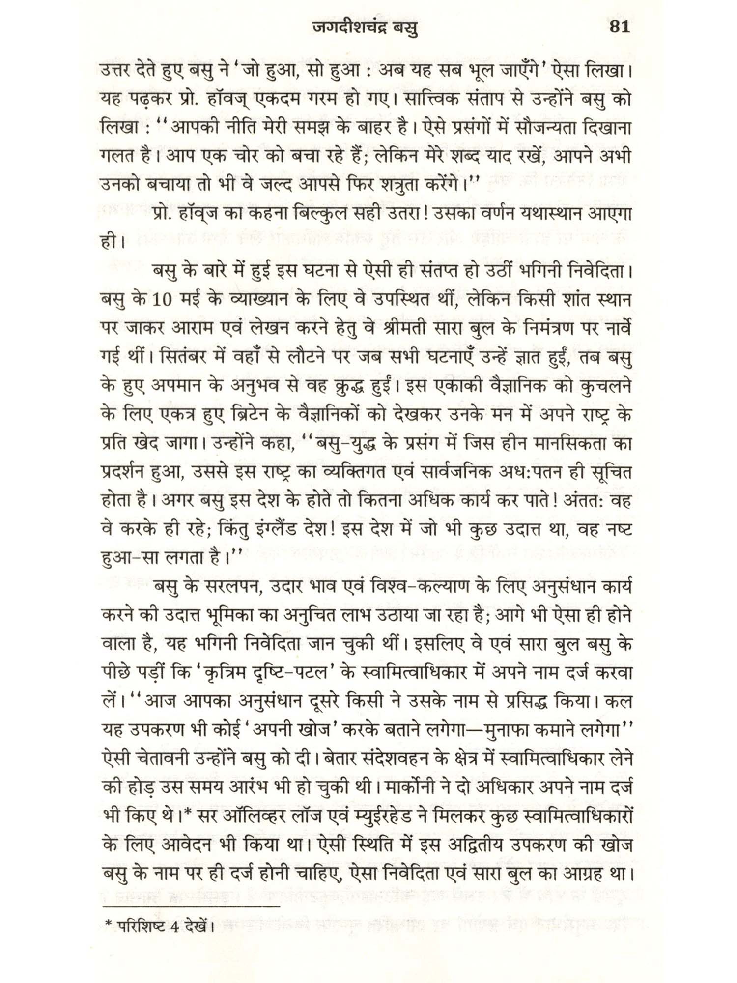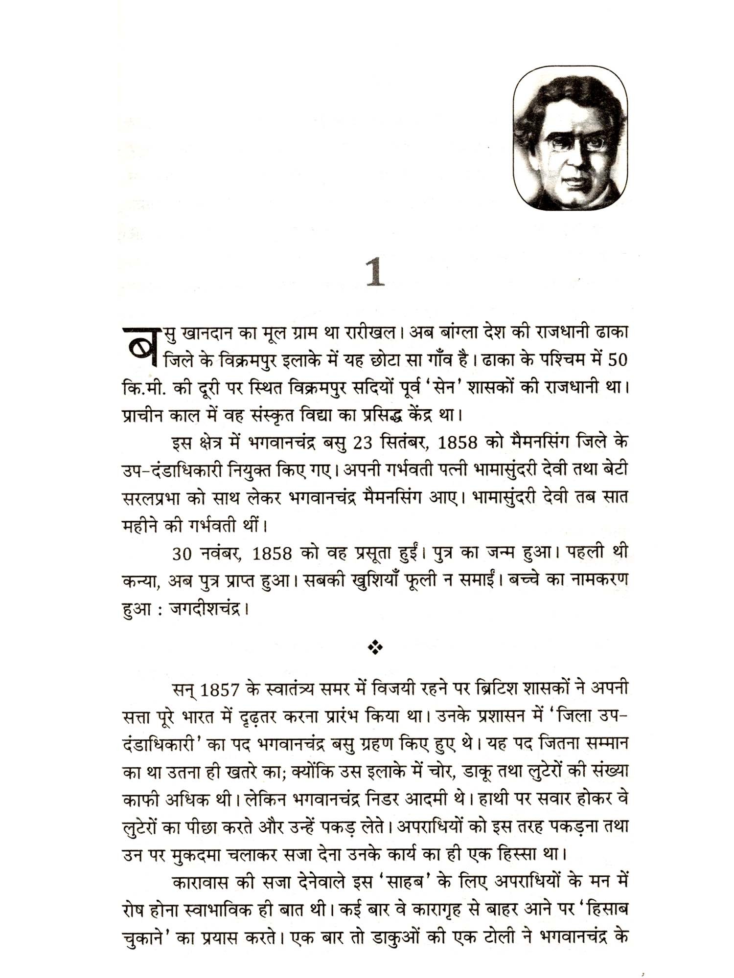 प्राचीन भारत की विज्ञान की अपनी एक वैशिष्ट्यपूर्ण परंपरा थी। कई कारणों से वह सदियों पूर्व लुप्त सी हो गई, गई, जिससे देश पर तमोयुग सा छा गया। इस तमोयुग से भारत को बाहर निकालकर आधुनिक विज्ञान की रोशनी यहाँ फैलानेवाले पहले वैज्ञानिक थे जगदीश चंद्र बसु । अत्यंत विपरीत परिस्थितियों में उन्होंने भौतिकी एवं वनस्पतिशास्त्र के क्षेत्रों में अनुसंधान किया, जिससे उन्हें वैश्विक मान्यता एवं कीर्ति प्राप्त हुई। भारत ने प्राचीन काल से' अद्वैत' का संदेश दुनिया को दिया। वह कुछ भावात्मक तथा आध्यात्मिक था। बसु ने अपने अनुसंधान से उस अद्वैत को वैज्ञानिक कसौटी पर सिद्ध किया। ज्ञाननिष्ठा, अंतःस्फूर्ति, वैज्ञानिकता, कार्यमग्नता, आत्म-विश्वास, निर्वैरता, दानशीलता, राष्ट्रभक्ति जैसे कई गुणों से संपन्न इस महान्, ऋषितुल्य वैज्ञानिक की यह जीवनी आज भी हम भारतीयों को विशेषकर युवाओं को ऐसे ही शोध कार्य के लिए प्रेरित करेगी।