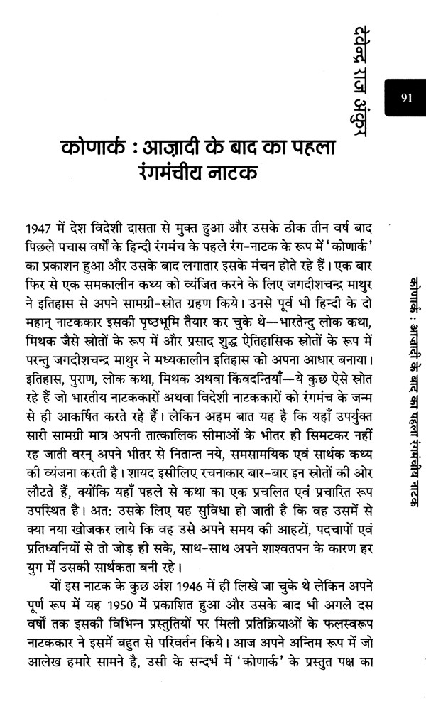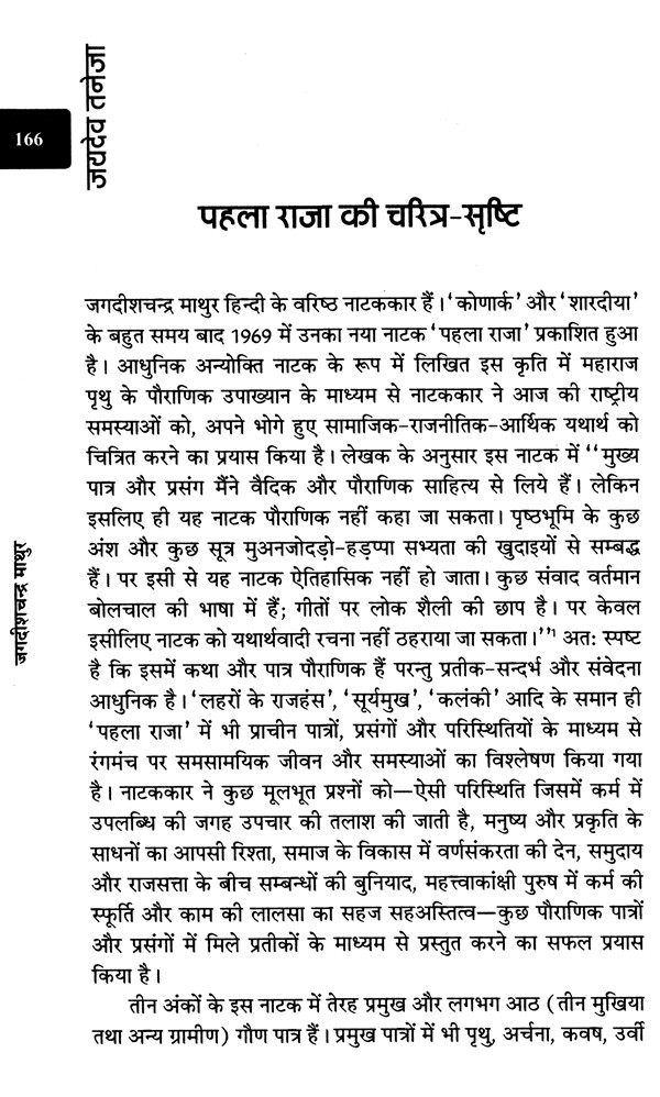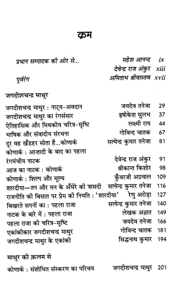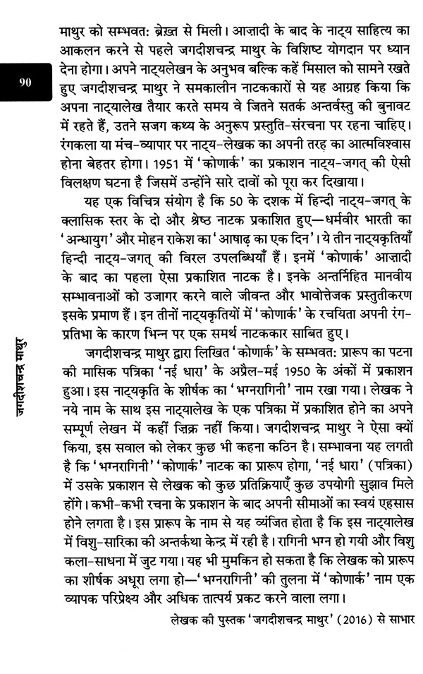 स्वाधीनता के बाद के हिन्दी रंगमंच के एक बहुत महत्त्वपूर्ण नाटककार थे स्व. जगदीशचन्द्र माथुर। हालाँकि उनके नाटकों की पृष्ठभूमि आज के समय की नहीं हैं, उसके बावजूद वो आज के समय से पूरी तरह जुड़ते हैं, आज भी उतने सामयिक और अर्थवान लगते हैं। वर्तमान समय के कई एक महत्त्वपूर्ण और ज्वलन्त सरोकारों को इन नाट्यकृतियों में प्रस्तुत करते हैं। जब मैं आज या वर्तमान शब्दों का इस्तेमाल कर रहा हूँ, उसका तात्पर्य सिर्फ़ 1947 के बाद का भारत ही नहीं, बल्कि 21वीं सदी का मौजूदा समय भी है। 'कोणार्क', 'शारदीया' और 'पहला राजा' का रंगमंच के छात्रों और रंगप्रेमियों के बीच पठन-पाठन होना चाहिए, प्रसार-प्रसार होना चाहिए, युवा रंगनिर्देशकों को अपनी आज की समझ, शैली और परिप्रेक्ष्य में इनके मंचन की सम्भावनाएँ तलाशनी चाहिए, ऐसा मुझे लगता है।