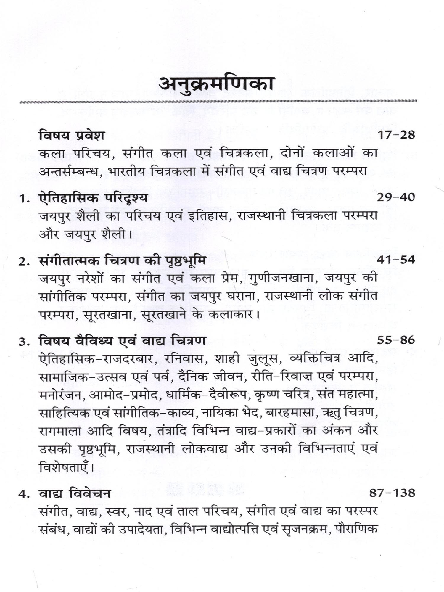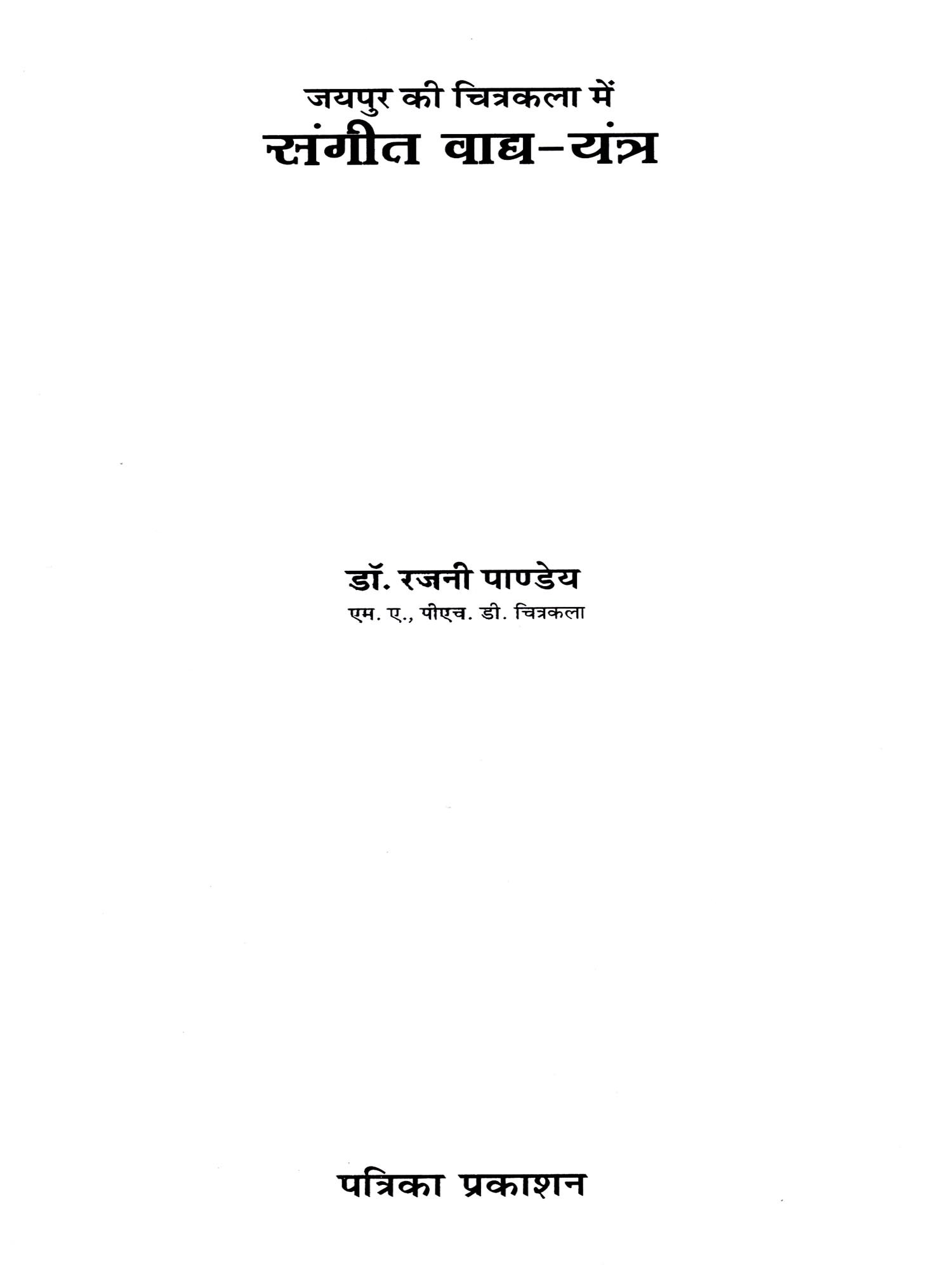 पत्रिका प्रकाशन की कला-संस्कृति संबंधी उत्कृष्ट प्रकाशन श्रृंखला में जयपुर की चित्रकला में संगीत और वाद्य यंत्रों की विशेष भूमिका को लेकर तैयार यह पुस्तक खासकर संगीत और वाद्य यंत्रों के संबंध में पठन-पाठन और शोध कार्यों में जुटे लोगों के लिए विशेष उपयोगी होगी। इस पुस्तक में दर्जनों दुर्लभ चित्रों का संकलन है जो हर पाठक के ज्ञानवर्धन में सहायक होगा, ऐसा हमारा विश्वास है।