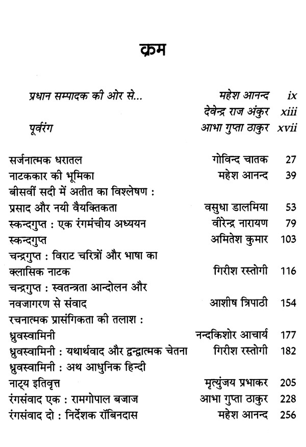 सर्वश्रेष्ठ नाट्यश्रृंखला के अन्तर्गत पाँच हिन्दी नाटककारों और अन्य नाटककारों के पाँच नाटकों के चुनाव में एक ही आधार रहा है- समय और समाज के स्वरों का अन्तर्लोक और उसको दृश्य में ढालने की सम्भावनाएँ। लेखों के चयन में यह कोशिश रही कि लेख नाटककार या नाटक को रंगकर्मियों/पाठकों के इतना नज़दीक ले आएँ कि वे नाटकों के भीतरी रंगमंच की व्याख्या पर संवाद कर सकें। साथ ही उनके विवेचन में नाटकलेखन और प्रदर्शन की नयी जिज्ञासाओं, विफलताओं और सफलताओं की गूंज सुनाई दे। भारतेन्दु ने अनेक रंगपरम्पराओं को पचाते हुए ऐसी विशिष्ट रंगशैली गढ़ी है जो राजनीति, धर्म, बाजार आदि ताक़तों की टकराहट में दर्शकों को प्रदर्शन का हिस्सा बनाती है। इस अनोखी रंगशैली के कारण डेढ़ सौ साल बाद भी 'अन्धेर नगरी' नाटक बच्चों और बड़ों के लिए आकर्षण का आधार बना हुआ है। इनके बाद जयशंकर प्रसाद ने (1906 और 1933 के बीच) कला के अनेक अनुशासनों से गुजरकर, महाकाव्यात्मक स्तर पर, राष्ट्रीय सुरक्षा के जरूरी सवालों के साथ राजनीति और व्यक्ति के टकराव को नये धरातलों पर पेश किया है। यह अलग बात है कि उनसे उभरती गैरयथार्थवादी शैली को तत्कालीन रंगकर्मी नहीं पहचान सके। हाँ, उनका 'ध्रुवस्वामिनी' नाटक शौक्रिया रंगमंच पर हमेशा चर्चा का विषय बना रहा।