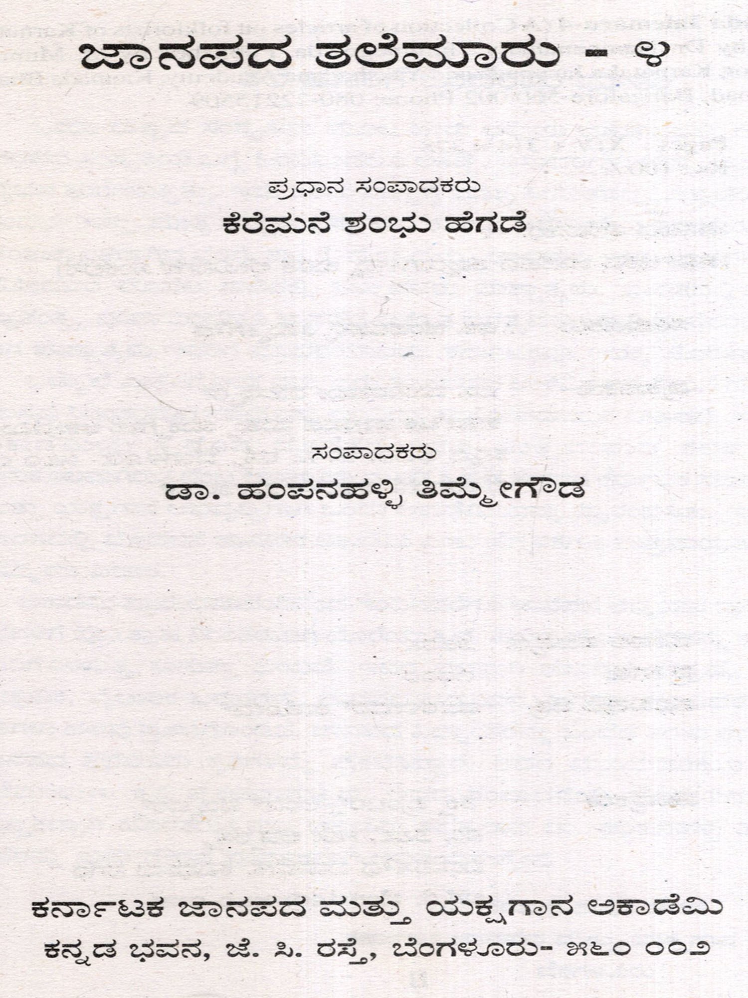ಜಾನಪದ ತಲೆಮಾರು: Janapada Talemaaru- A Collection of Articles on Folklorists of Karnataka in Kannada (Vol-2)