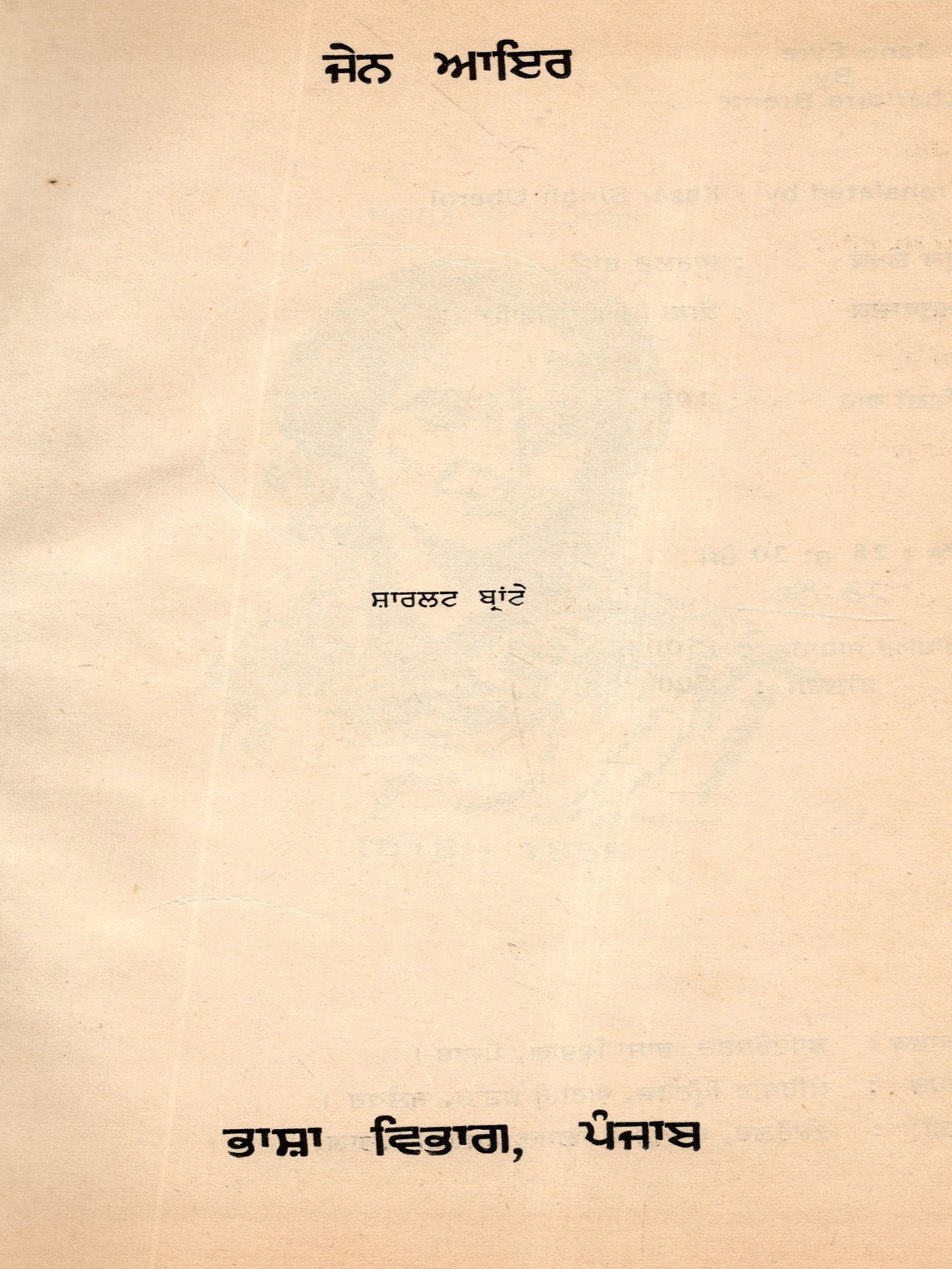 ਜੇਨ ਆਇਰ: Jane Eyre- Novel (An Old and Rare Book in Punjabi)