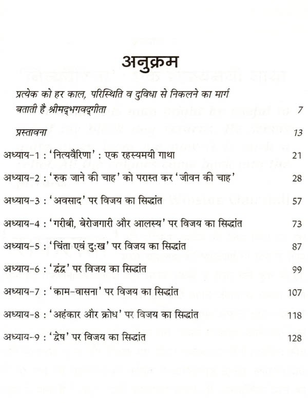 दुनिया भर में बेशुमार लोग हाल ही में फैल रही महामारी के प्रतिकूल प्रभावों को झेल रहे हैं। अधिकांश लोग मानसिक उत्पीड़न, बेरोजगारी या फिर किसी--किसी विपदा से जूझ रहे हैं, जबकि अन्य को किसी बीमारी ने घेरा है। कोई रिश्तों में बेवफाई की टीस से तड़प रहा है तो कोई दफ्तर या व्यवसाय में आर-पार की लड़ाई में व्यस्त है। कोई बुढ़ापे से परेशान है तो कोई सामाजिक भेदभाव से दुखी। कोई बच्चों के विवाह में विलंब से चिंताग्रस्त है तो कोई बैंकों के बड़े कर्ज में डूबा। कोई रात-दिन अदालतों के चक्कर काट रहा है तो कोई हिरासत में उम्रकैद। किसी को कैंसर ने अपनी चपेट में ले लिया है तो अन्यों को ब्लड प्रेशर, शुगर या फिर डायलेसिस के चक्रव्यूह ने घेरा है। कोई दिन में आलस्य का शिकार है अथवा कोई रात में नींद आने से जूझ रहा है। 'महाभारत' के अर्जुन की तरह हम भी आज द्वंद्व और असमंजस में फँसे उचित निर्णय लेने का सामर्थ्य ही खो बैठे हैं। अंतःकरण पर मानो बेचैनी, बेकरारी, द्वेष, ईर्ष्या, काम, क्रोध और भय ने अपनी स्थायी सत्ता सी बना ली है। जीवन में एक के बाद एक विपदा, बुरा समय है कि जाने का नाम ही नहीं लेता। इतने दुःख परेशानी के बावजूद एक मजेदार पहलू यह है कि महाभारत से लेकर आजतक कुछ भी नहीं बदला है। हमारी ऐसी दयनीय मनःस्थिति कुरुक्षेत्र महाभारत के समय भी थी, आज भी है और कल भी इसी तरह रहनेवाली है। इस क्रम में हम सभी के लिए सुख सांत्वना की बात यह है कि श्रीमद्भगवद्गीता में उपर्युक्त समस्त समस्याओं के समाधान कल भी प्रासंगिक थे, आज भी हैं और कल भी रहनेवाले हैं। मनोविज्ञान की विश्रृंखलता का समाधान श्रीमद्भगवद्‌गीता में कल भी था, आज भी है और कल भी रहनेवाला है। श्रीमद्भगवद्‌गीता के तात्त्विक सिद्धांतों पर आधारित इस पुस्तक में उल्लेखित '7 त्रिगुणी सिद्धांत' बिल्कुल साधारण परंतु अत्यंत प्रभावी और शक्तिशाली हैं। मेरा यकीने कामिल है कि इन विधि-विचारों को अपने रोजमर्रा के जीवन प्रयोग में लाने से आप भी मेरी ही तरह इन प्राचीन सिद्धांतों के चामत्कारिक प्रभाव से अवश्य लाभान्वित होंगे। मेरी आपसे प्रार्थना है कि कृपया इस पुस्तक को प्रस्तुत अध्याय-क्रम में ही पढ़ें। सफलता के सिद्धांतों का सारतत्त्व पूर्णरूप से तभी समझ आएगा, जब आप उपर्युक्त सिद्धांत 'रुक जाने की चाह' को परास्त कर 'जीवन की चाह' में निहित विशिष्ट मान्यताओं का संज्ञान लेंगे। हो सकता है कि उपर्युक्त सिद्धांत भाषा व तत्त्व जटिलता के चलते एक बार पढ़ने पर समझ में न आएँ। इसे दो या तीन बार पढ़ने पर तत्त्वसार अवश्य समझ में आएगा। बाकी अन्य अध्यायों की भाषा-शैली आम और सहज है। इस पुस्तक के प्रेरणा स्रोत वस्तुतः वर्तमान सरसंघचालक माननीय मोहन भागवतजी हैं। 7 जून, 2018 को मैं अपने जेल कारावा