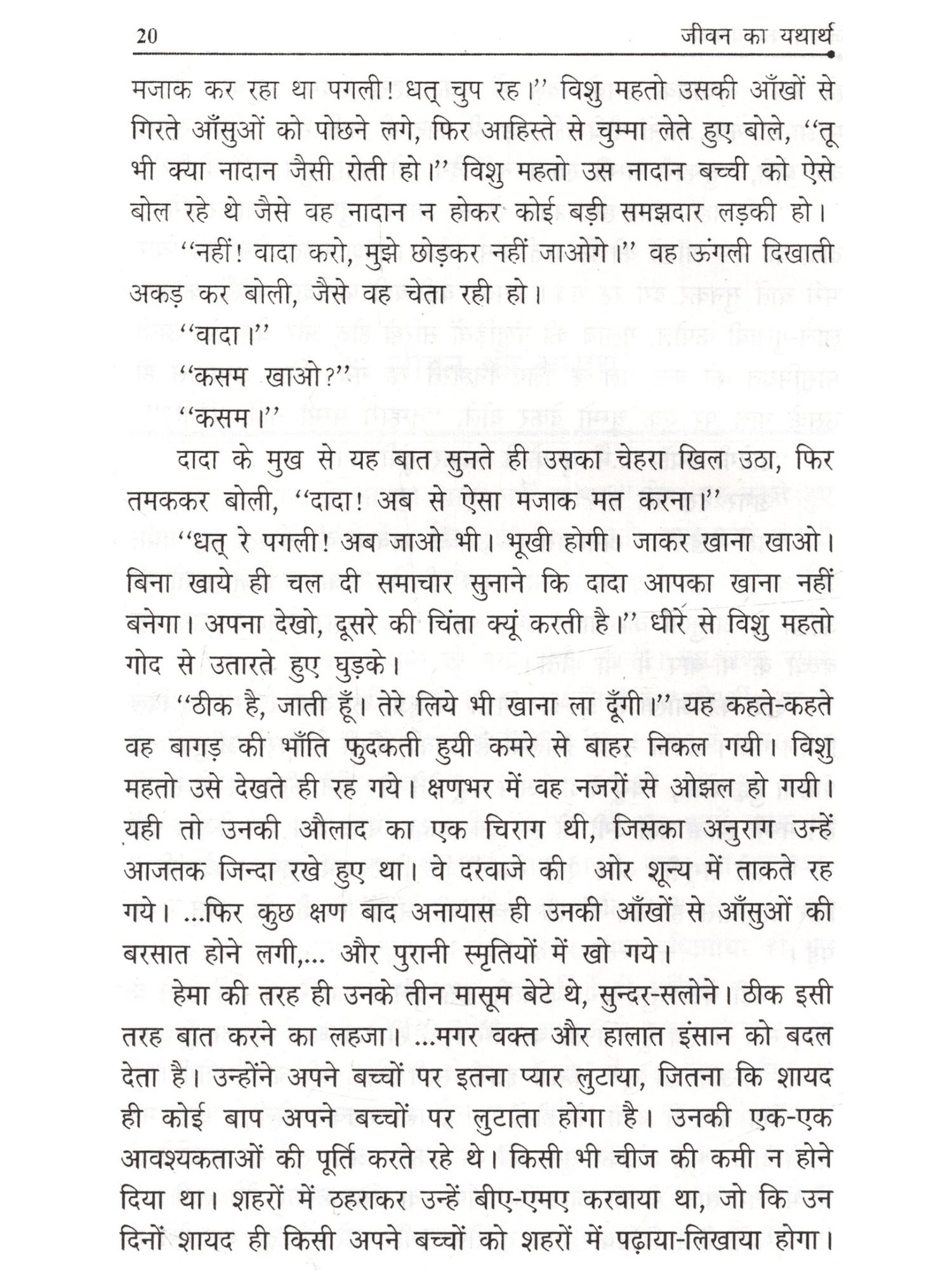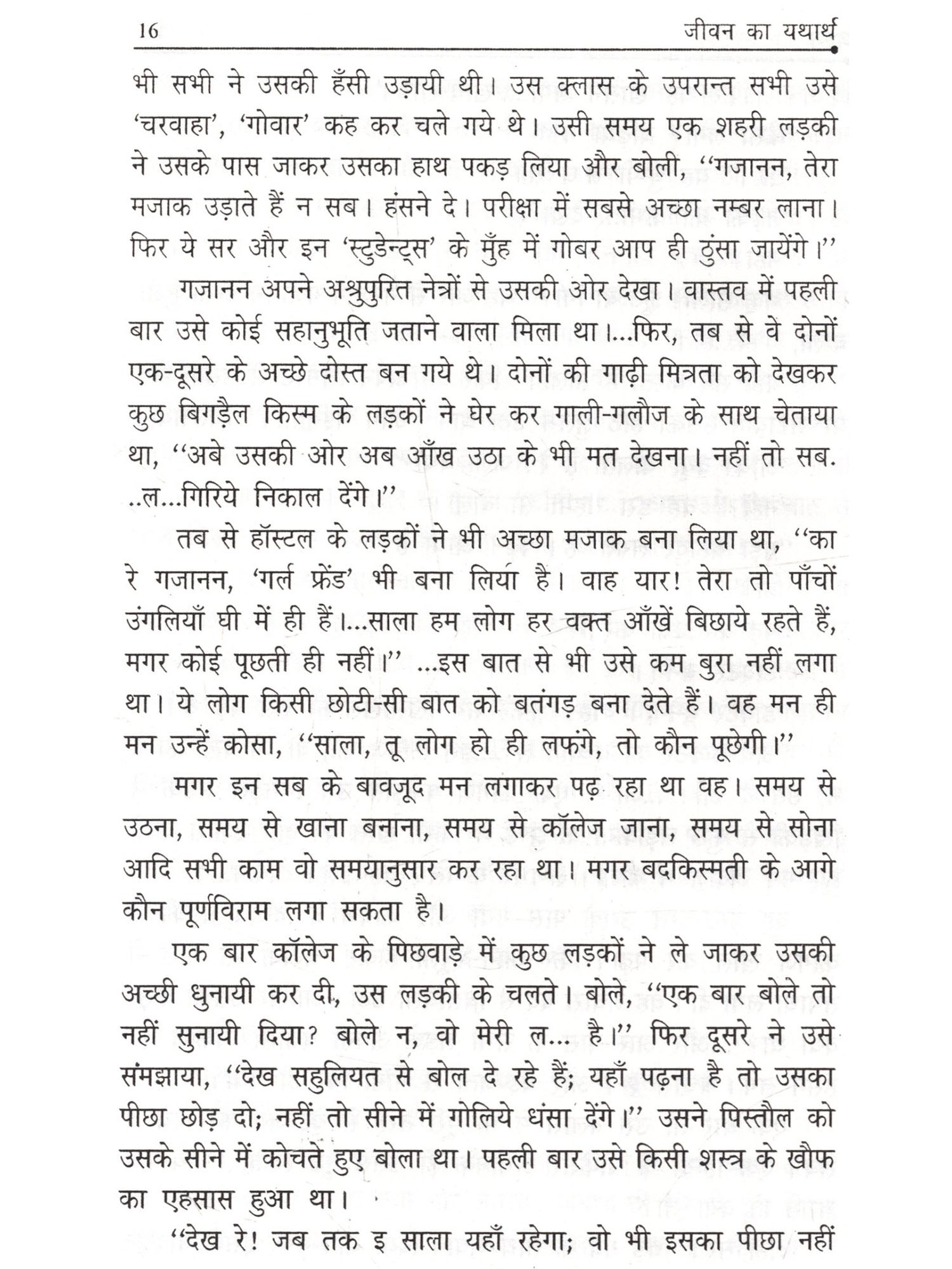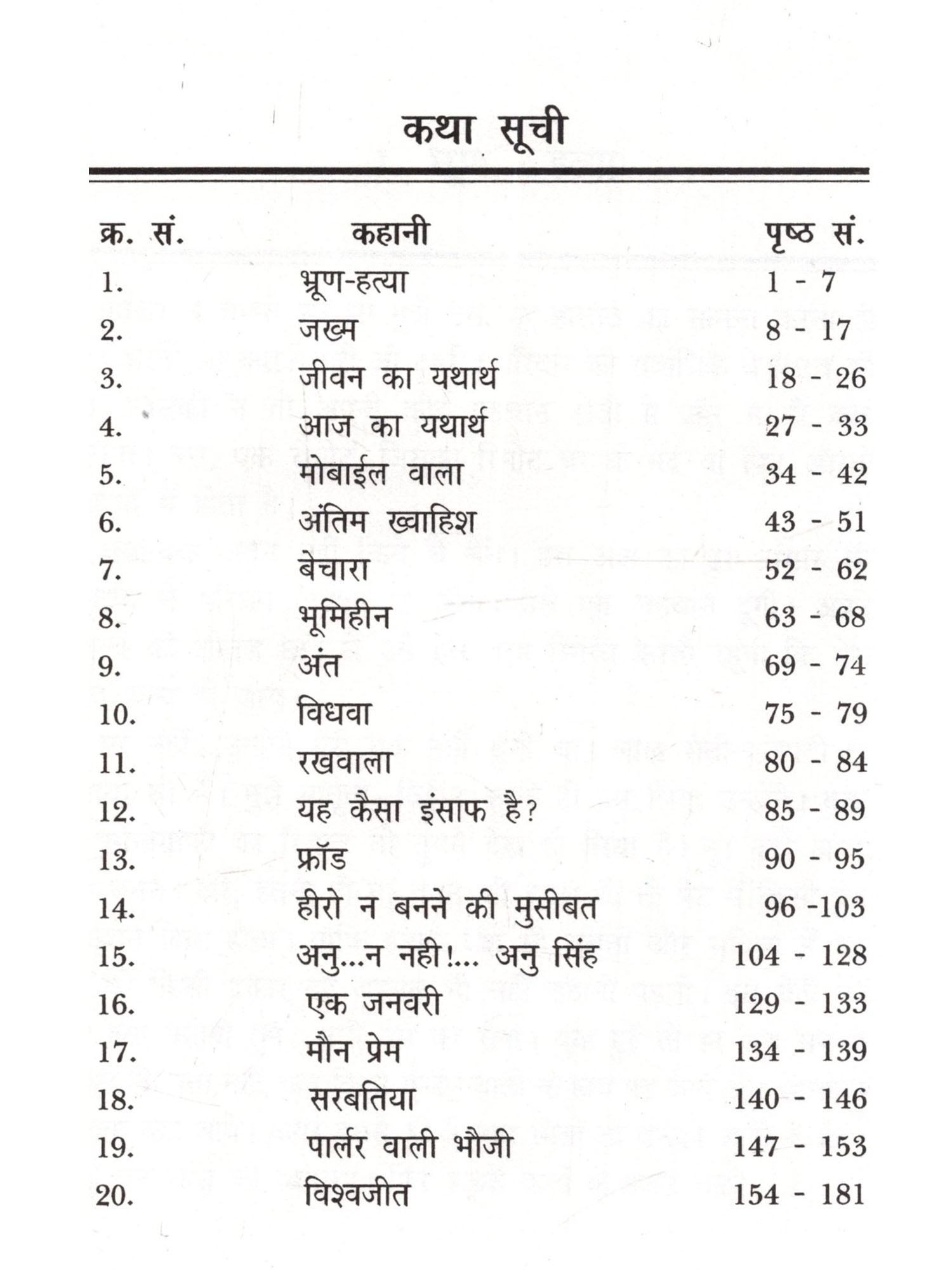 'जीवन का यथार्थ जीवन की सत्य घटनाओं का कारुणिक प्रस्तुतिकरण है। इस संग्रह की प्रत्येक कहानी पाठकों को कुछ-न-कुछ संदेश प्रेषित करती है। इस संग्रह की पहली कहानी 'भ्रूण हत्या' महिलाओं की विवशता और पुरुष की तानाशाह मानसिकता का परिचय कराती है। दूसरी कहानी 'जख्म' एक गंवई विद्यार्थी की कारुणिक दास्तान है। तीसरी कहानी 'जीवन का यचार्य' एक वृद्ध व्यक्ति की व्यथा कथा है। 'आज का यथार्थ वस्तुतः वर्तमान में शिक्षित युवक की कहानी है जो दर-दर की ठोकरें खाता है। 'मोबाइल वाला' एक प्रेम कहानी है, जिसमें प्रेमिका के हिस्से मौत ही आती है। 'अंतिम ख्वाहिश' दरअसल विवाह मंडप से उठी अविवाहित युवती की मार्मिक दास्तान है। 'बेचारा' एक बच्चे की व्यथा कथा है, जिस पर माँ-बाप का साया बचपन में ही उठ जाता है। 'भूमिहीन' एक मजदूर की कहानी है। 'अंत' मुम्बई में एक गंवई युवक के संघर्ष की कहानी है। 'विधवा' एक औरत की मार्मिक व्यथा-कथा है। 'रखवाला' एक ऐसा पात्र है, जो दुनिया के शीक-मौज से बेखबर पेट के खातिर दार्शनिक बन बैठा है। 'यह कैसा इंसाफ है' एक किन्नर की दुःख भरी कहानी है। 'फ्रॉड' एक ऐसी कथा है, जिसमें एक युवक झूठ का शिकार हो जाता है। 'हीरो न बनने की मुसीबत' एक संघर्षरतः युवा की दुःखभरी कहानी है। 'अनु न ही.... अनु सिंह' एक अर्द्ध-मनोरोगी युवती की दास्तान है। 'एक जनवरी' झुठी शुभकामनाओं पर आधारित कहानी है। 'मौन-प्रेम' शिक्षक और छात्रा के बीच अव्यक्त प्रेम कहानी है। 'सरबतिया' एक भोली-भाली लड़की से वैश्या बनने की कहानी है। 'पार्लर वाली भौजी' स्वरोजगार करने वाली महिला की दुःखभरी दास्तान है... और सबसे अंत में 'विश्वजीत' एक असफल प्रेम की कहानी है। इस तरह इस पूरे संग्रह में समाज के विभिन्न पक्षों का मार्मिक चित्रण किया गया है।