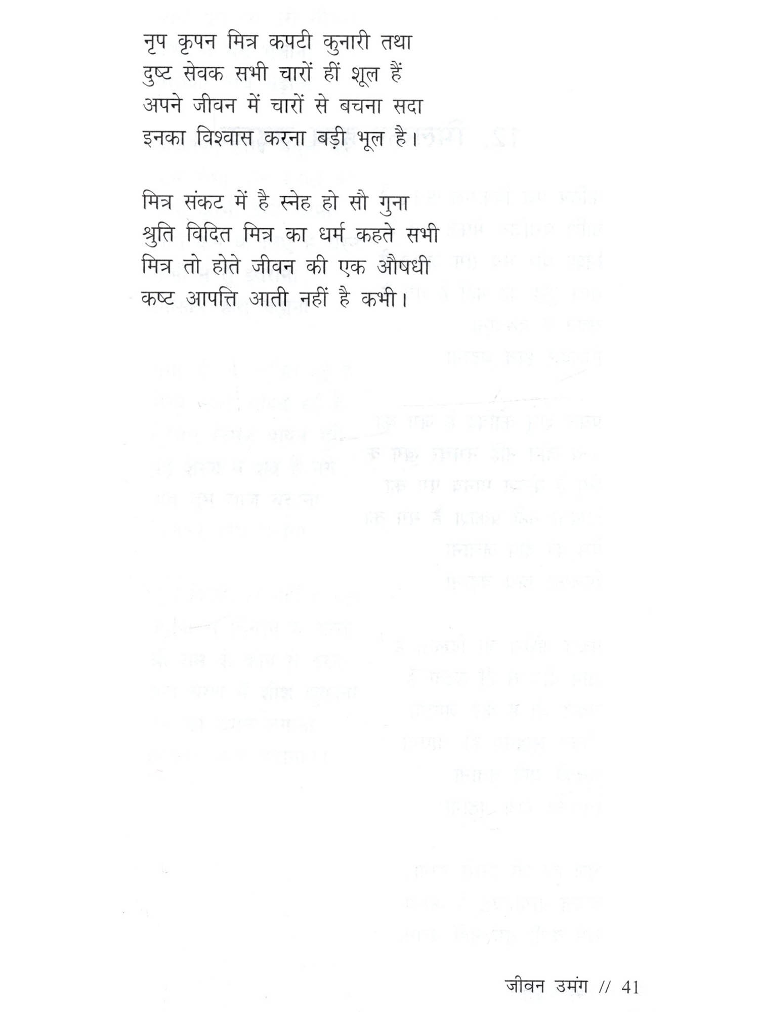 कविक जीवन को कलात्मक अभिव्यक्ति प्रदान करती है। मानवीयता को स्पर्श करने में कविता एक ऐसा माध्यम है जिसे आदिकवि ने सर्वप्रथम अपने मुख से प्रस्फुटित किया। आचार्य रामचन्द्र शुक्ल ने अपने निबंध 'कविता क्या है?" में लिखा है "जिस प्रकार आत्मा को मुक्तावस्था ज्ञानदशा कहलाती है, उसी प्रकार हृदय की मुक्तावस्था रसदशा कहलाती है। हृदय की इसी मुक्ति की साधना के लिए मनुष्य को वाणी जी शब्द-विधान करती आई है, उसे कविता कहते हैं। इस. साधना को हम भावयोग कहते हैं और कर्मयोग और ज्ञानयोग का समकक्ष मानते हैं।" कवि डॉ. प्रदीप कुमार दुवे का काव्य संग्रह 'जीवन तरंग' की अपार सफलता के बाद 'जीवन उमंग' कविता संग्रह अपने नाम की सार्थकता को नया आयाम देता है। जीवन में उमंग का बने रहना सदा स्फूर्ति से भरा रखता है। गुलजार ने कहा है कि "कविता एक ऐसी नदी है जो दिल की गहराइयों से बहती है।" "जीवन उमंग' पुस्तक में आई कविताएँ इसी प्रवाह को बनाए हुए हैं। समाज में फैली अधाह पीड़ा, शोक, दुःख, करुणा को कवि अपनी संवेदना से बाँधने का प्रयास करने में पूर्ण सफल रहा है। इस संग्रह में सर्व प्रथम कवि ने अपने आराध्य पवन सुत हनुमान की स्तुति की है तत्पश्चात मानस महात्म्य', 'स्वार्थ सिद्धि' 'नारी धर्म', 'निंदा रस', 'गरीबी', 'बेटी', 'आज की मंथरा किसान' एवं 'टूटते रिश्ते 'आदि सामाजिक क्लीवता को उजागर करने के साथ ही प्रकृति को भ्रमित करने का जो मानव उपक्रम कर रहा है उसको अपनी कविता का विषय बनाया है।