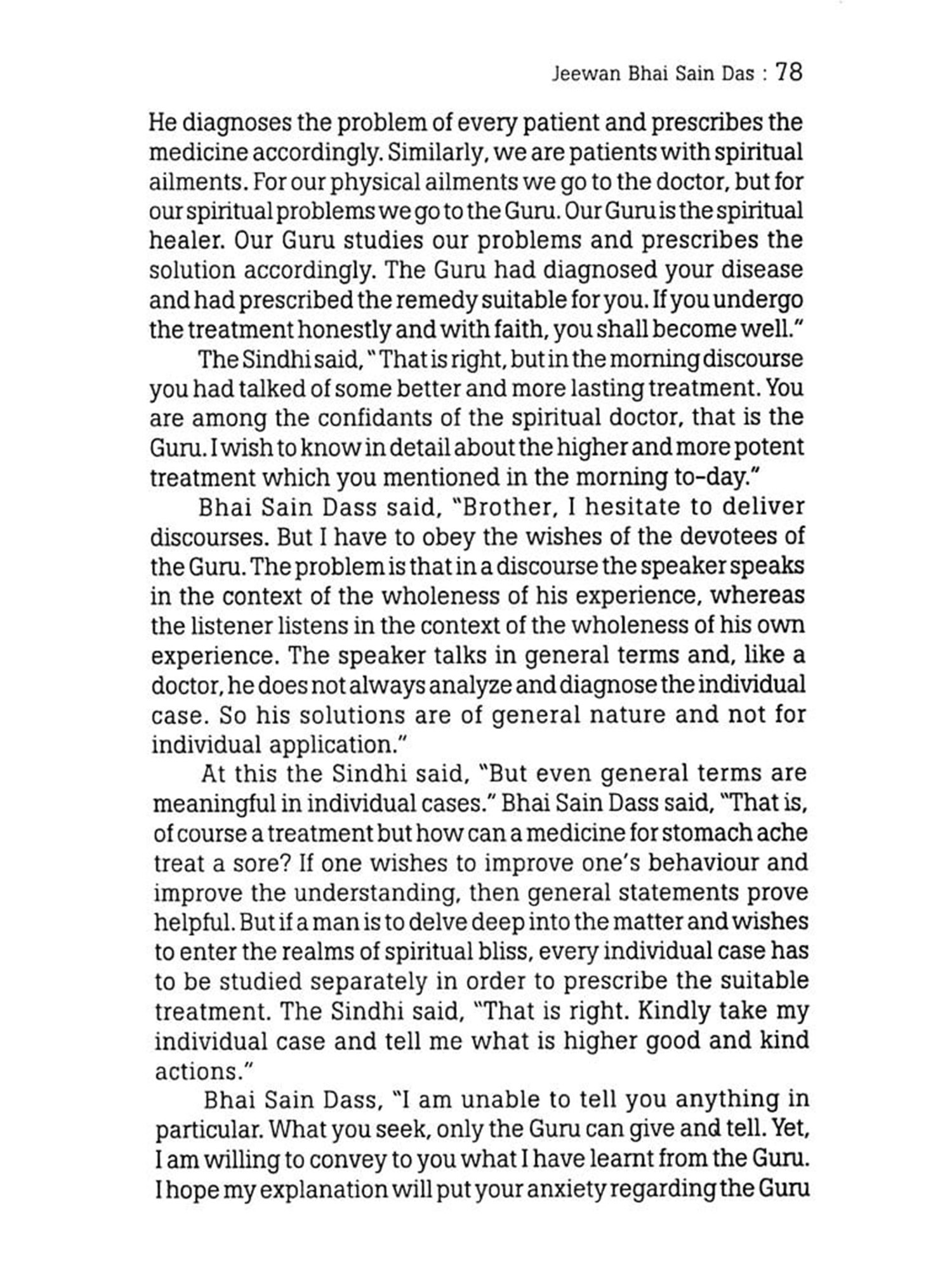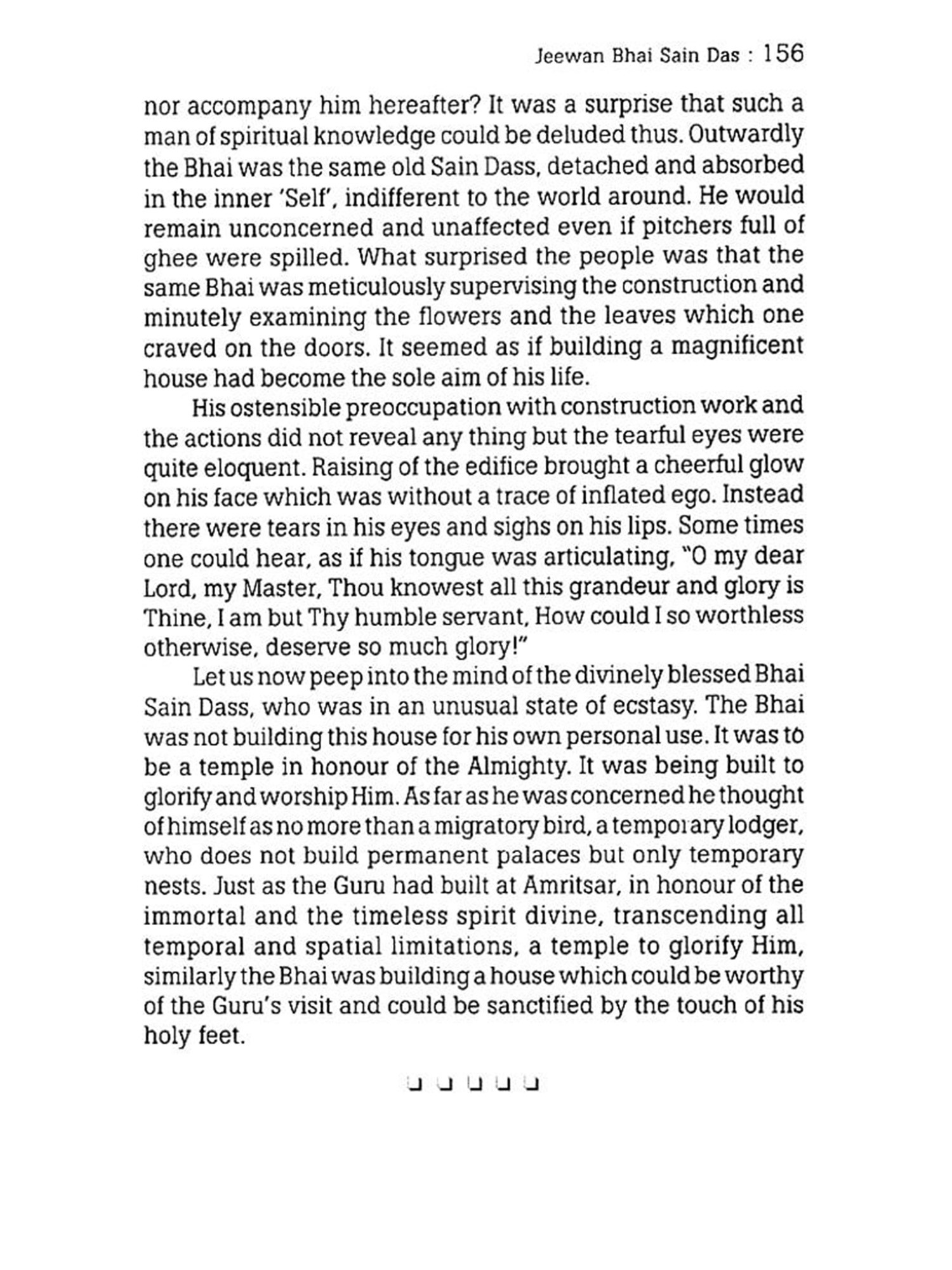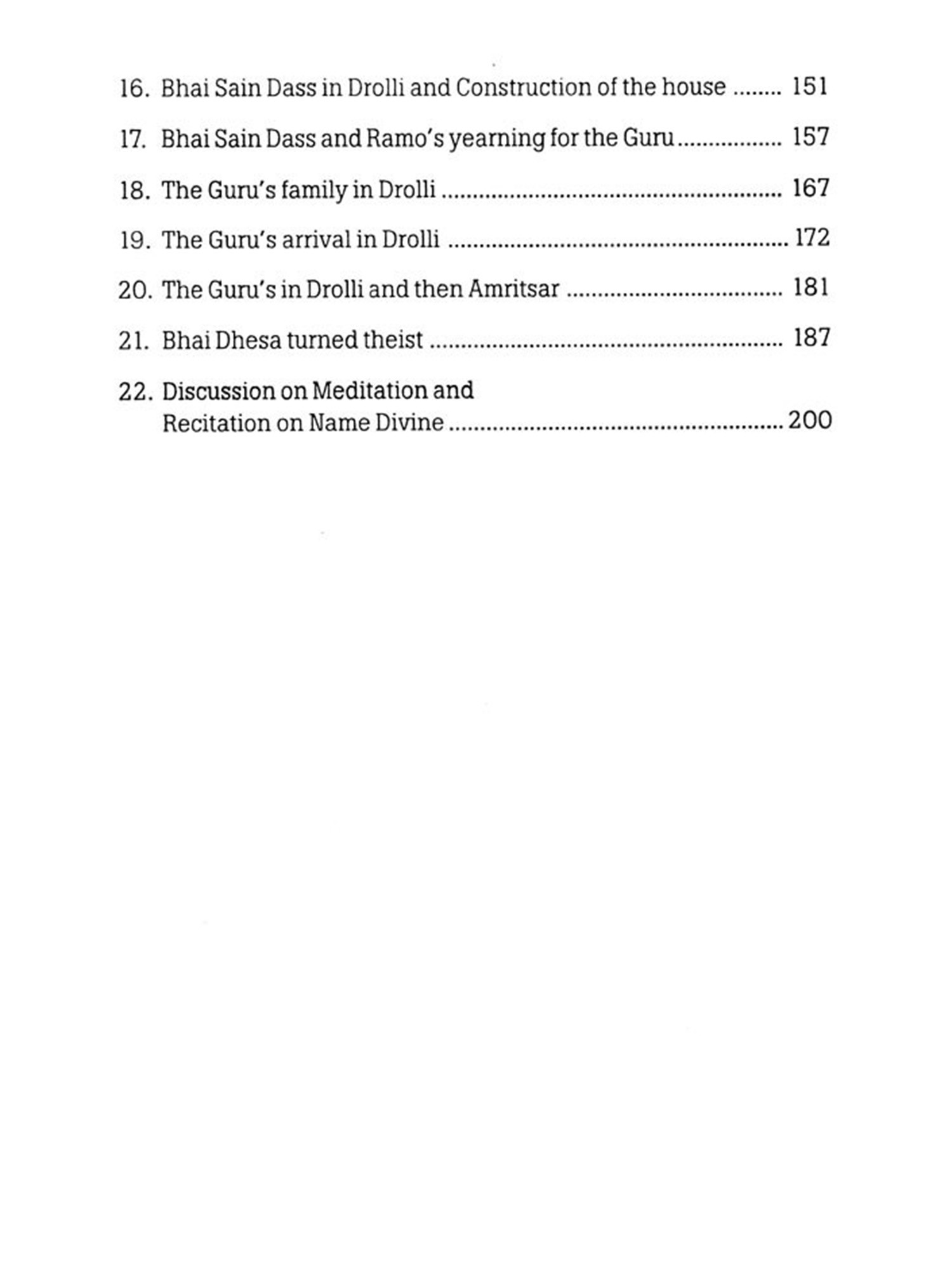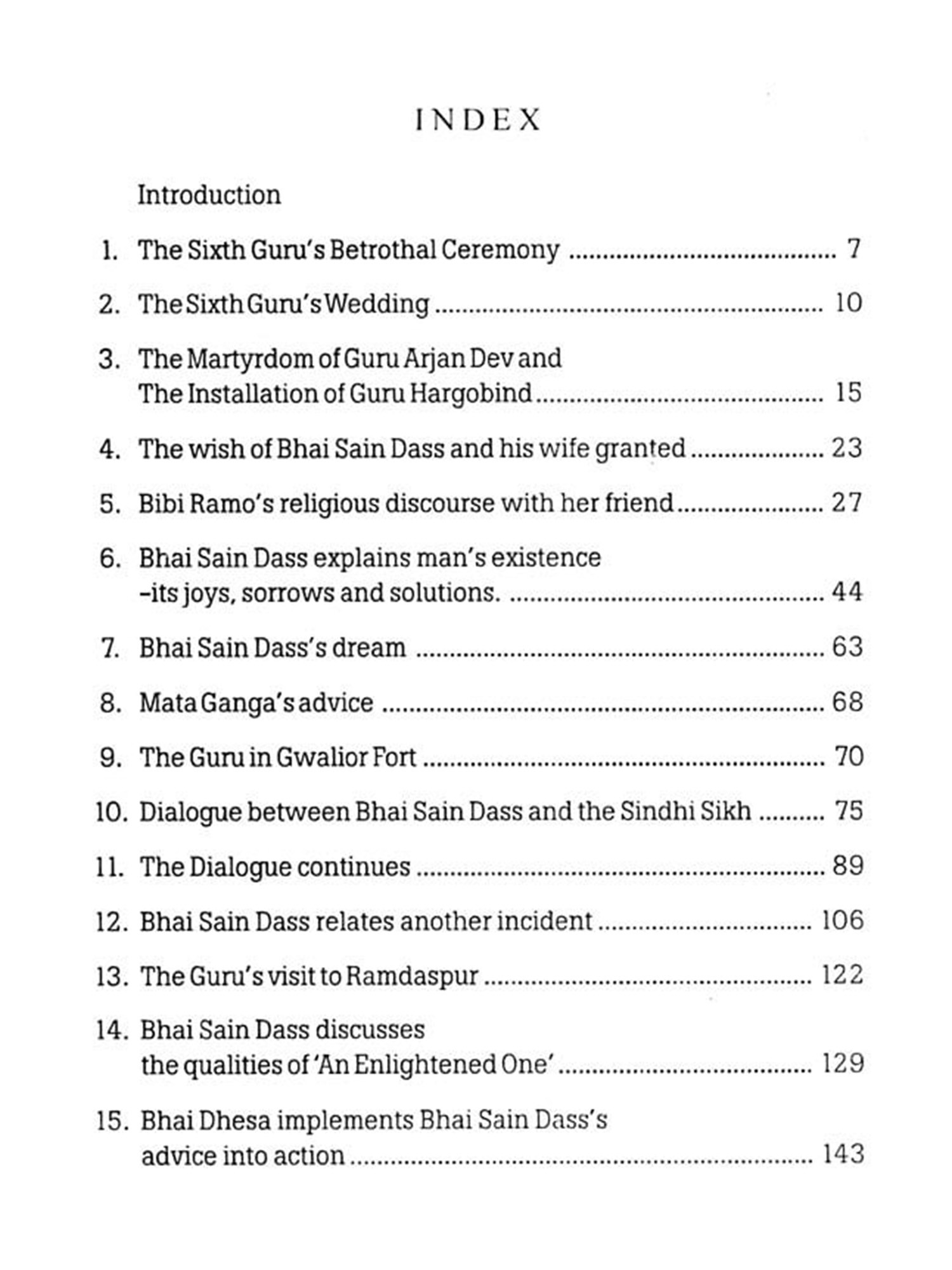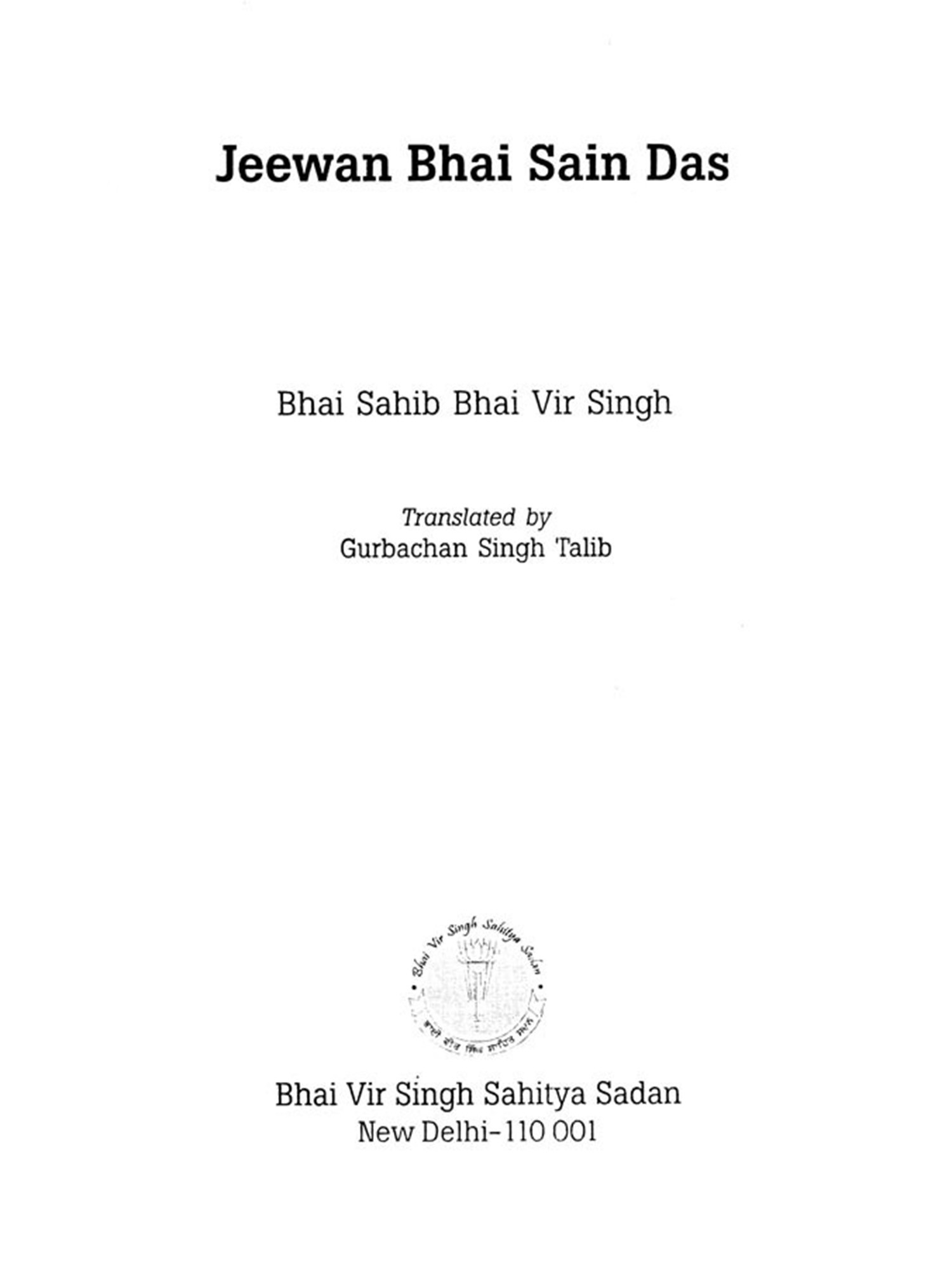 This book Jeevan Bhai Sain Dass is an extract from the above. Its Punjabi edition was released in 2008. On repeated requests from the devotees and readers of Bhai Vir Singh the English edition is being published. For their information Bhai Sain Dass was Sangha by caste and brother-in-law of Guru Hargobind - their wives were the daughters of Bhai Narayan Dass. Bhai Sain Dass was not only a relative but also a devotee of the Guru. Due to this intimate and sacred relationship, the Guru often visited Drolli village of Bhai Sain Dass. The Guru left his wife who was in the advanced stage of pregnancy with her sister. It was here that she gave birth to a son. The Guru visited this village several times and stayed here. There are many precious relics of the Guru which have been preserved by the descendants of Bhai Sain Dass in his ancestral Haveli in village Drolli Bhai Ki near the town of Moga in Panjab. Pictures of these are included in the book for the benefit of the readers.