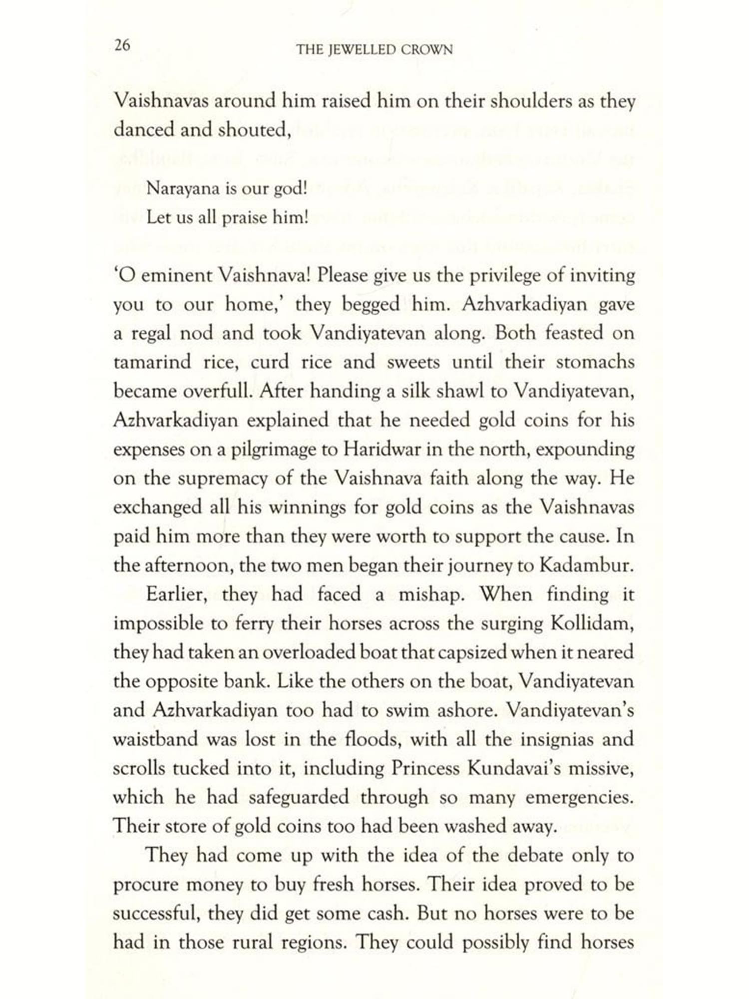 As Kalki's enthralling saga continues to unfold apace in The Jewelled Crown, Gowri Ramnarayan's fleet-footed translation proves equal to the challenge of capturing its heightened momentum and suspense.