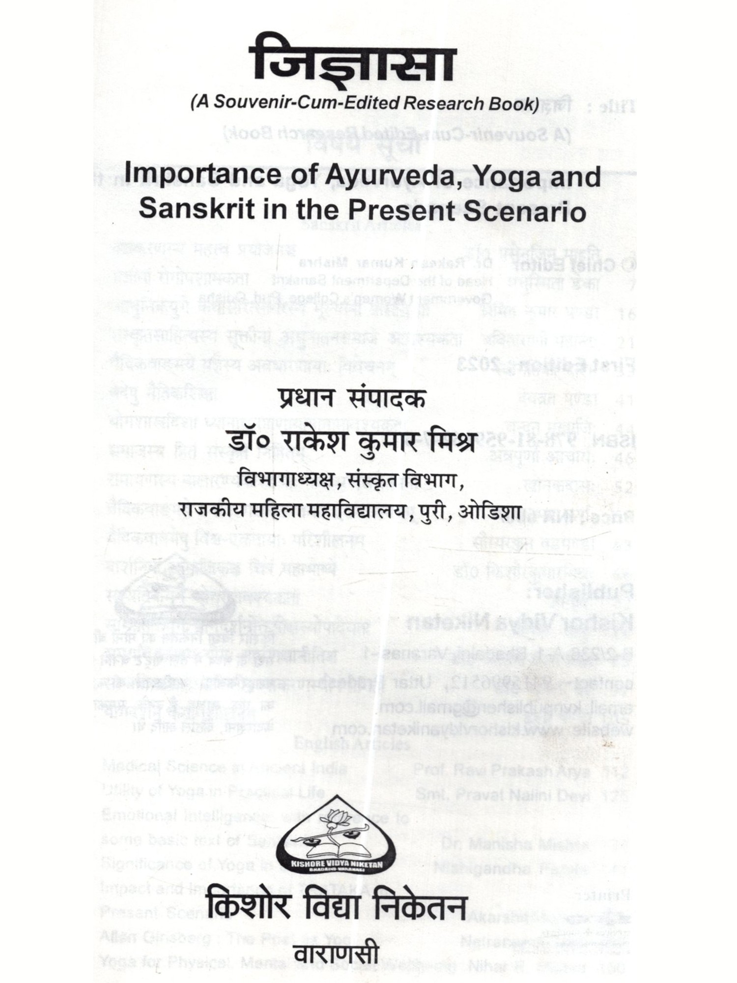 जिज्ञासा: Jijnasa (A Souvenir-Cum-Edited Research Book) Importance of Ayurveda, Yoga and Sanskrit in the Present Scenario