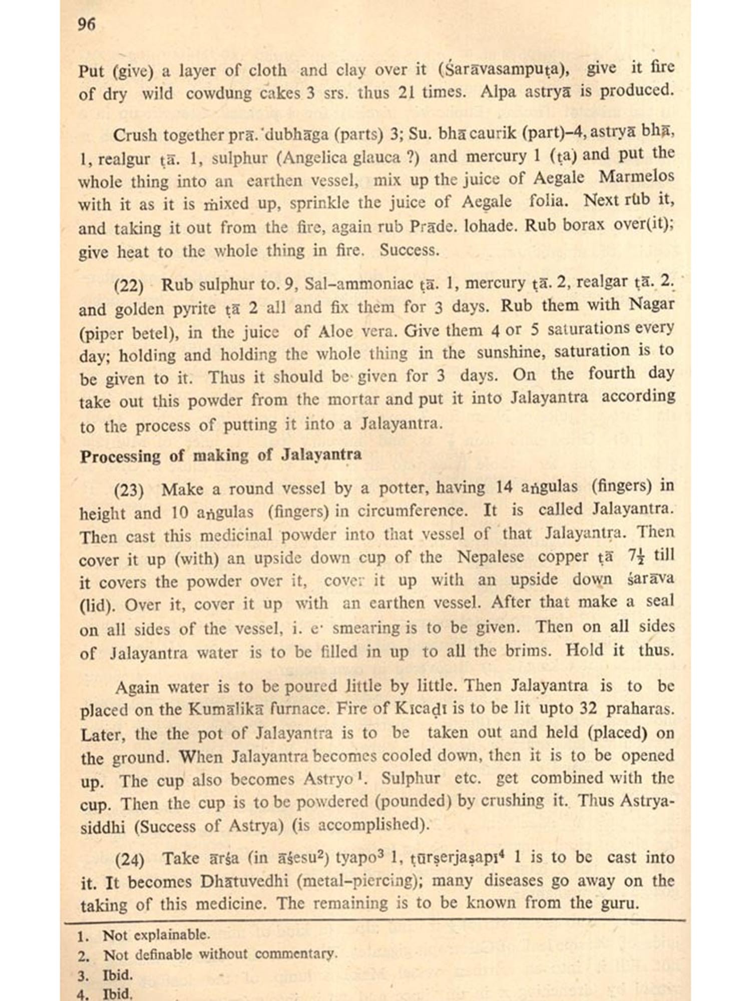 The Jaina alchemists, who nurtured chemistry as a practical art and through their varied endeavours, provided the growth-points from time to time along with other Indian alchemists. They introduced new chemicals including mineral acids and more importantly evolved a number of apparatuses, despite the esoteric theories.