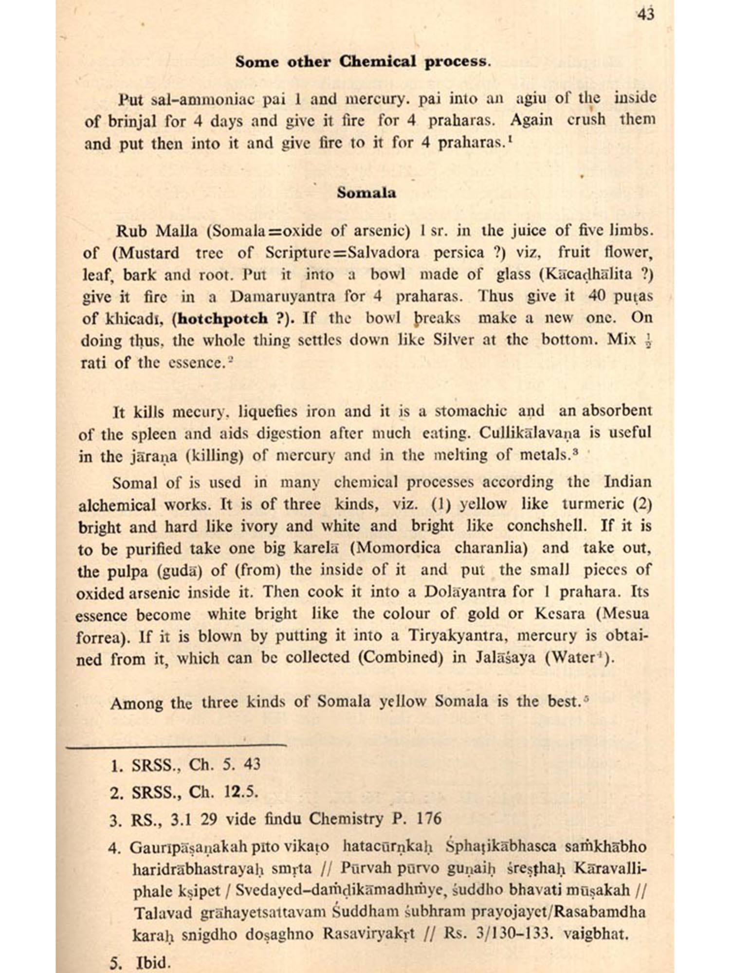 The origins of alchemical art are shrouded in the darkness of antiquity. The word 'alchemy' is an Arabic modification of the Greek word 'Chemieia. Towards the end of the fourth century A.D., an Alexandrian Hellenic alchemist named osmimos made use of the word 'Chemieia' for the first time, relating it to the art of transmutation. The Greek word 'Chemicia' or 'Chemi' denots black and it was used to identify Egypt because of the black soil of the Nile Valley and to signify the 'blackening' stage of the so-called transmutation process¹.