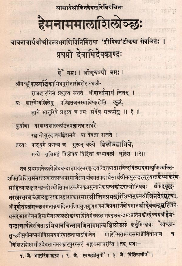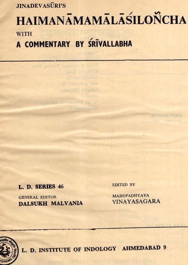 हैमनाममालाशिलोञ्छः- Jinadevasurps Haimanamamalasiloncha with a Commentary by Srivallabha (An Old and Rare Book)