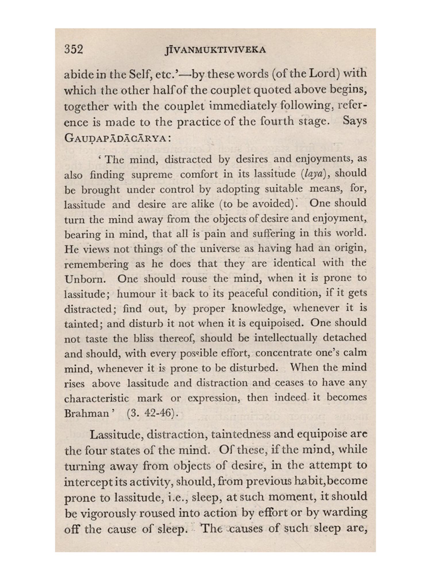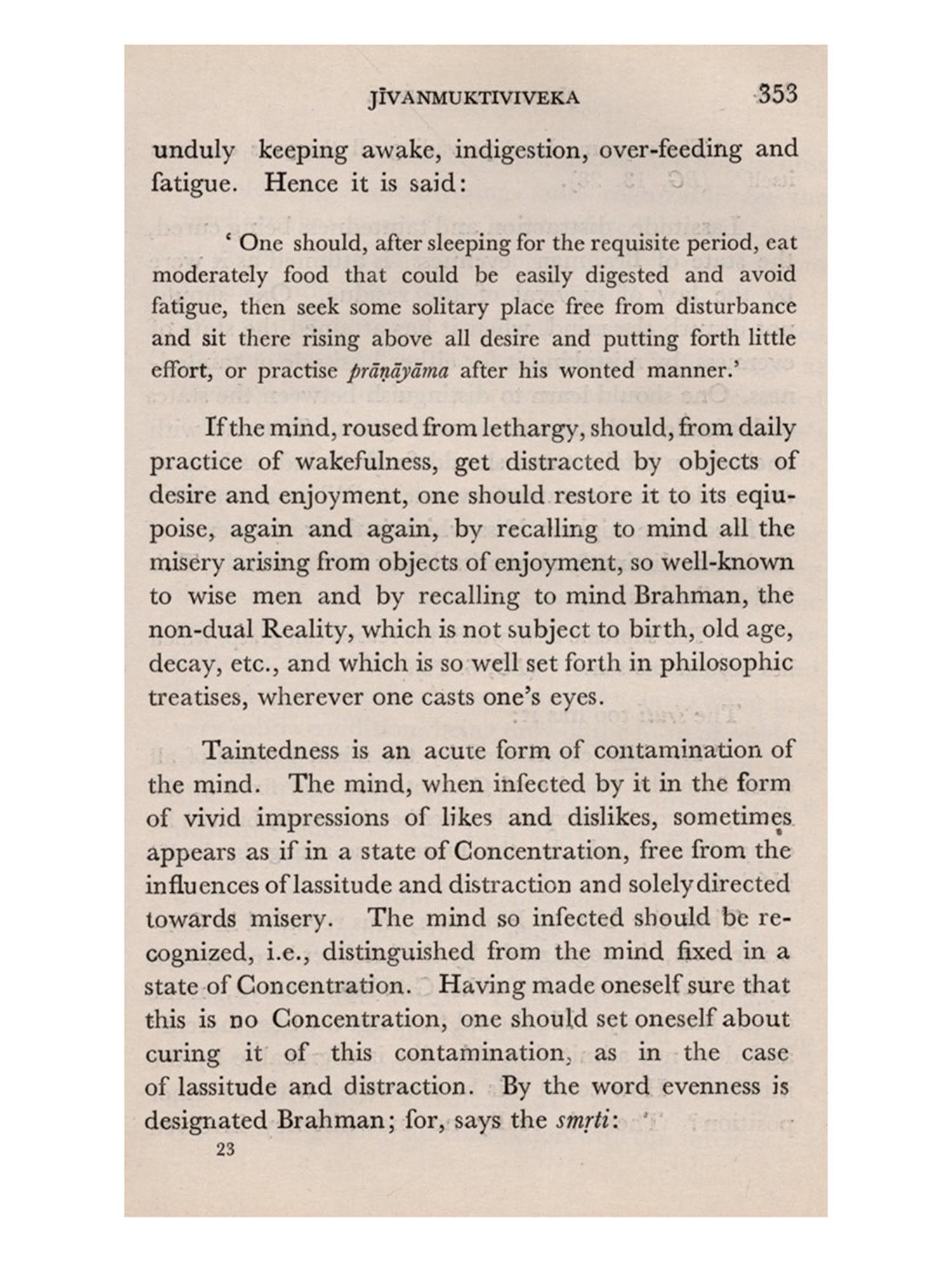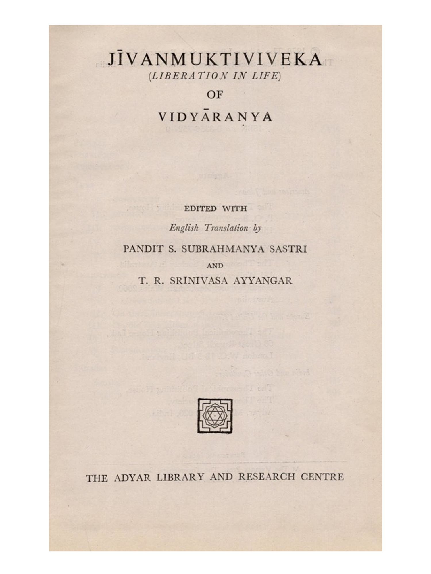 THE Jivanmuktiviveka or The Path to Liberation in life is a well-known book, unique in the favour it finds with the samnyasins of India, and a compilation from several scriptural works by the great scholar Vidyaranya. He is known to have written on almost every important branch of literature, in his time, with such grasp and finish as would surprise the most accurate writer of the present day. He lived in the fourteenth century. He was the Prime Minister of the King of Vijayanagara-Bukka Raya to whom he dedicated his best work, the Vedabhasya-the elaborate scholia on the Veda. Sayaņa, the minister, became, in after life, Vidyaranya, the samnyasin. He apparently compiled this work after he renounced all concern with the world. His life, spent in the midst of varied activity at the court of Bukka Raya, had its culmination in the quiet bliss of supreme spiritual exaltation. Vidyaranya is indeed an illustrious example of the true brahmana and his very life nobly illustrates the truth of his teaching. Verily it may be said of him that he found Liberation in life', and 'The Path' he points out to us in this work is, no doubt, the surest road to eternal peace and happiness, while yet we live in the world.