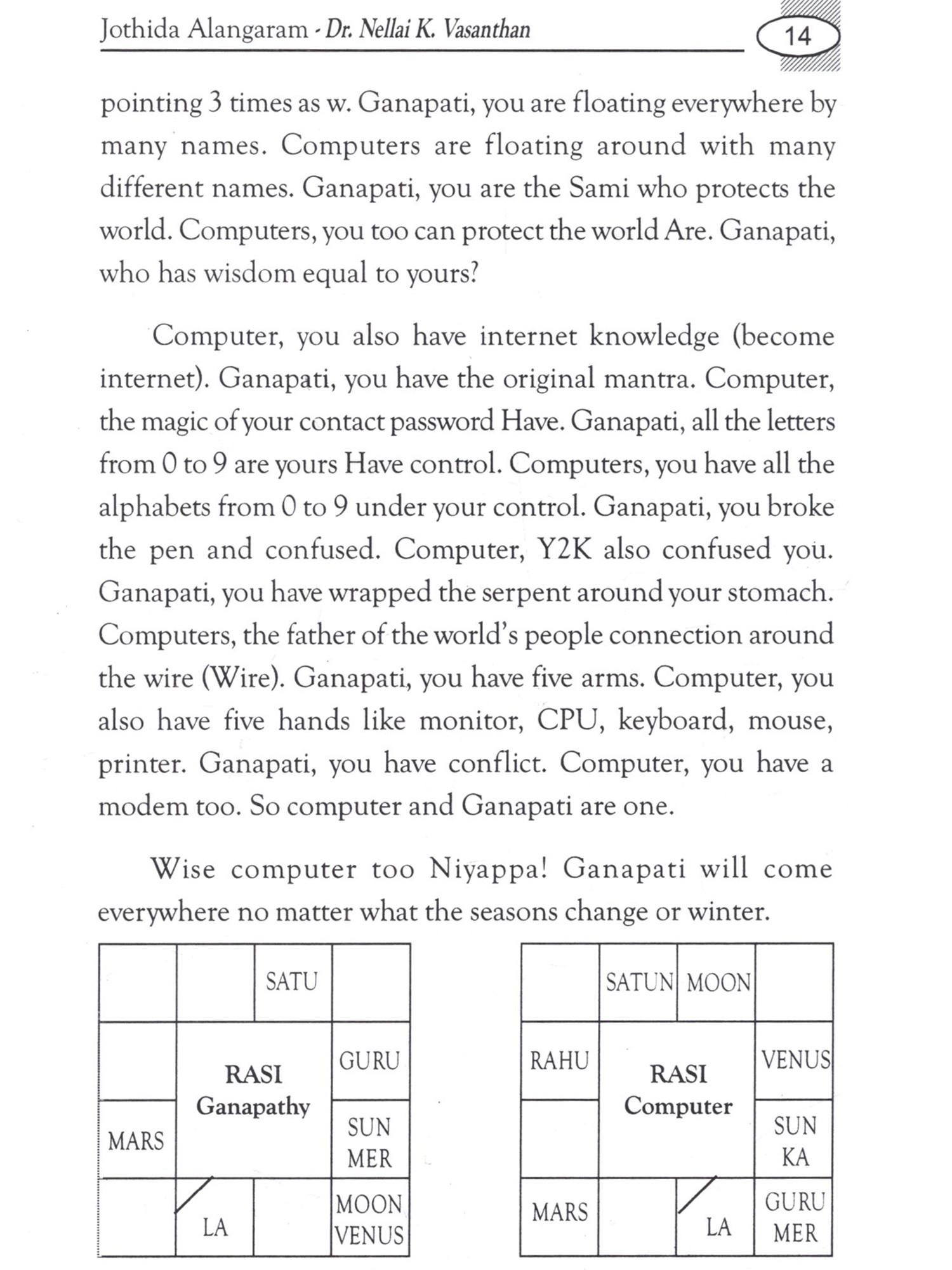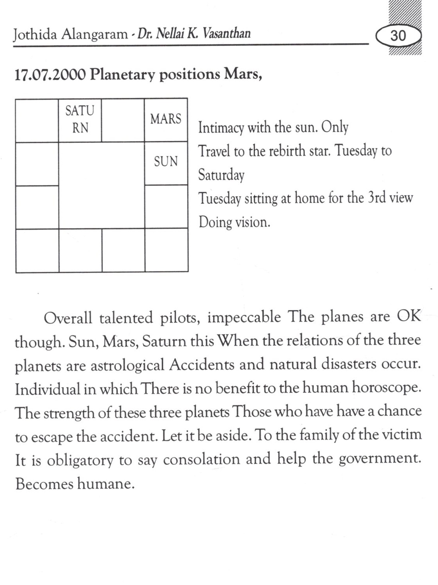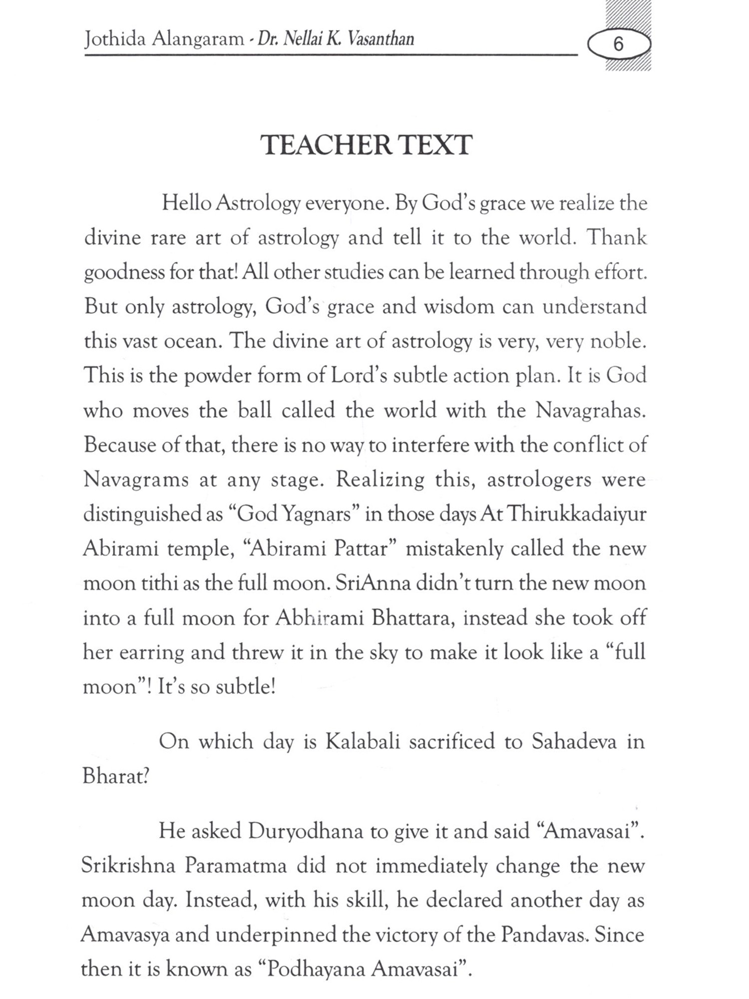 "Jothida Alangaram" Dr. Nellai Vasanthan is known for his unique way of approaching Astrology by saying even gods are controlled by planetary positions. N.K.V System is a modern art of Astrology and research which gives us simple and effective remedies for the welfare of human life. After many years of research, Dr. Nellai K Vasanthan compiled his knowledge and wisdom in the book "Jothida Alangaaram" which includes "To find ones career or business", "To find who can be-come an astrologer", "Planets related to flight accidents" and "To find who have credit card dhosham" "Jothida Alangaaram" is one of the masterpieces of Nellai K Vasanthan. N.K.V System has the most simple and unique way of remedies using ribbon, groceries, bamboo sticks, metals, and meat. This system can also be used to predict the future through Aadhar cards and Cash Prasanam. This system specifies in-name astrology of a particular horoscope of a person and their surroundings.
