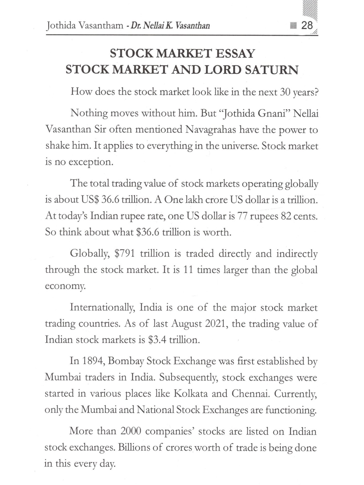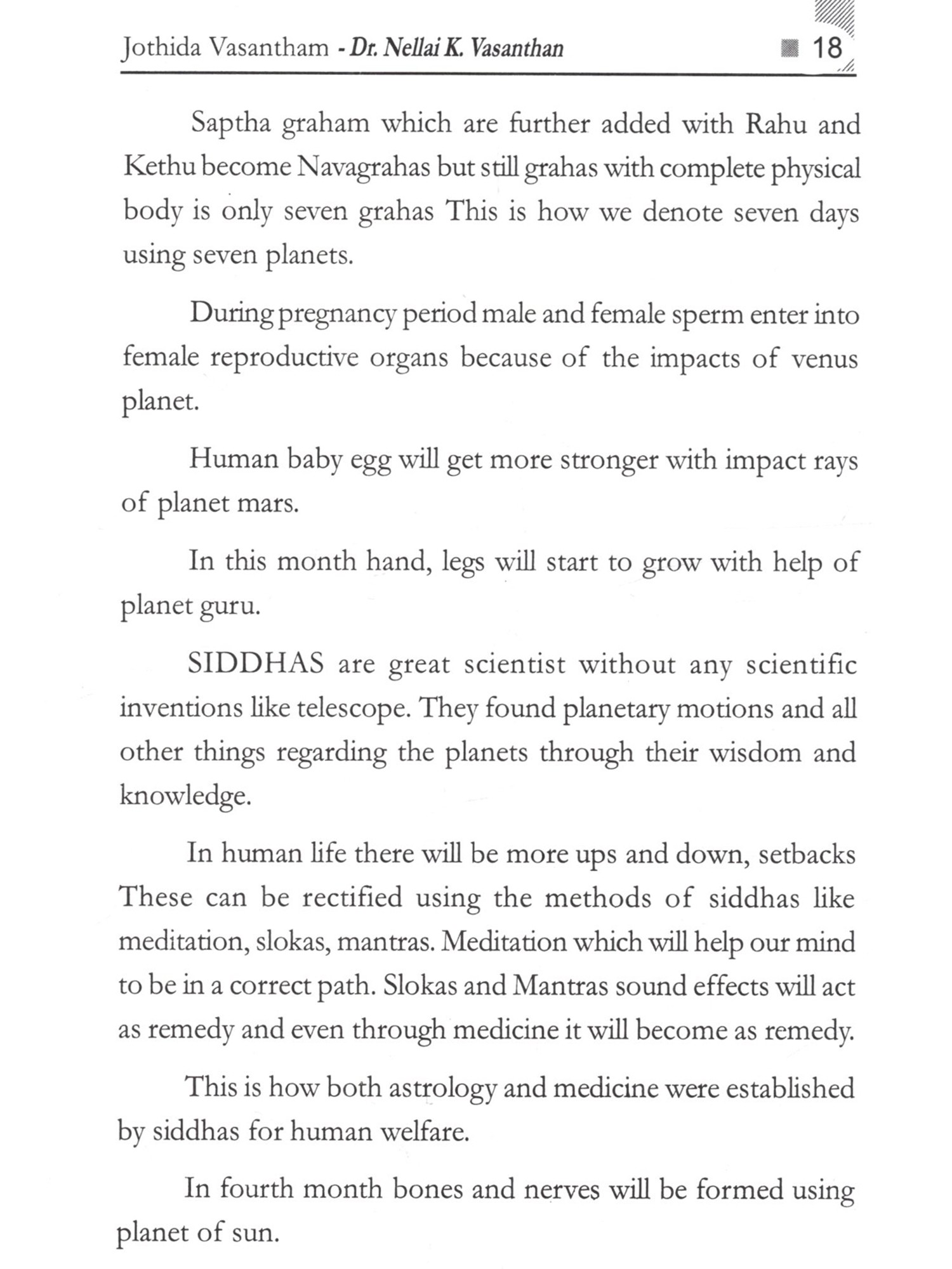 Jothida Ratna Dr. Nellai K Vasanthan has been known for his excellence in Astrology for more than 45 years. He was also called the "Indian Nastrodamus" for his accurate predictions and simple remedies. He created his own method and named it as N.K.V system of astrology. His motive is to spread the knowledge of astrology to the world.