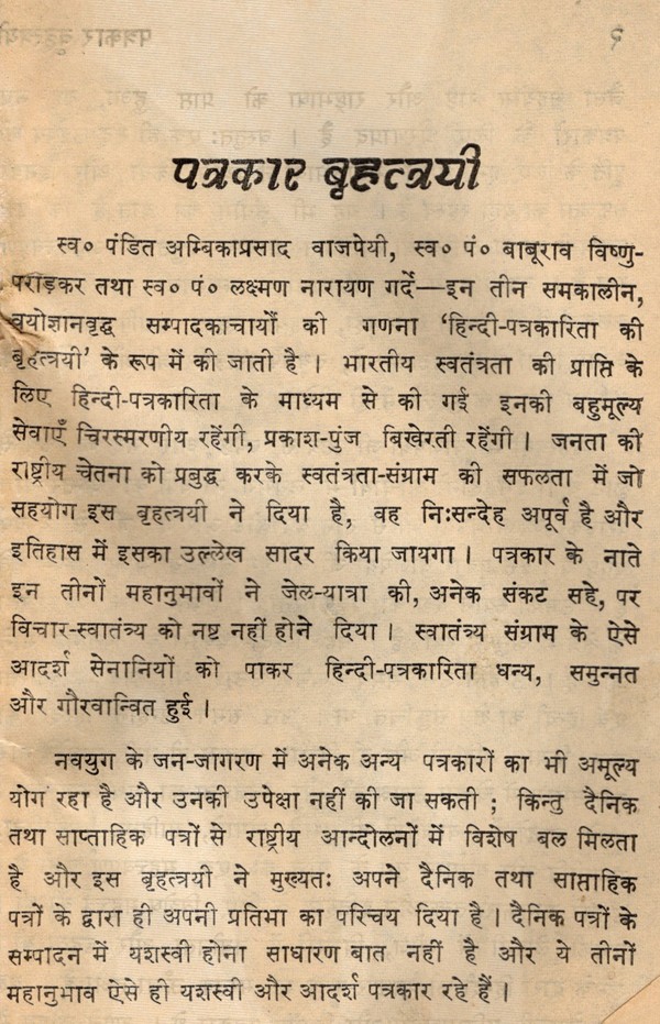 पत्रकार बृहत्रयी- Journalist Brihatrayi: Only 1 Quantity Available (An Old and Rare Book)