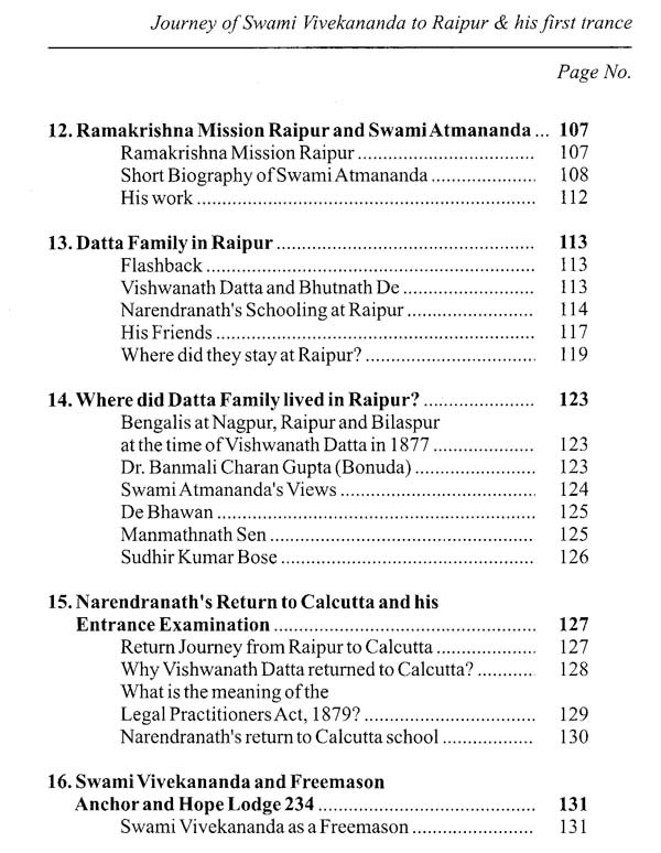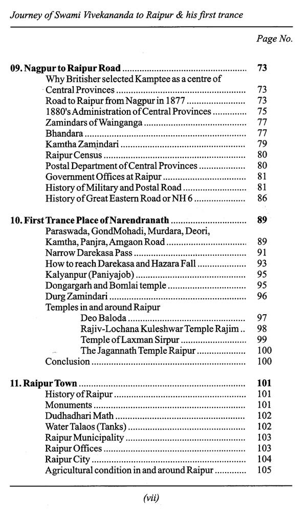 This is a part of my original work to give fuller accounts of the various old books and gazetteers with which I have come in contact with, I have, therefore, to a great extent limited my references, under these headings to facts which have come under my own personal observation. Similarly, I had intended giving more comprehensive sketches of Swami Vivekananda's journey to Raipur from Calcutta based on authentic materials. There is a great, an indescribable pleasure in being the first to take up the historical exploration of a hitherto quite unknown facet of Swamiji's life, in being the first to interpret the past history of a portion of above journey. I developed a deep interest in this journey right from my student days. What I have come across during my research period, I wanted to share it with you all, with the Blessings of Thakur Sri Ramakrishna, Maa Sarda Devi and Swami Vivekananda.