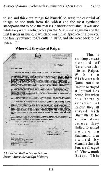 My work is a "chronological account of the event in early life of Swami Vivekananda" from his birth (1863) and up to the demise of his father Shri Vishwanath Datta (1884). This historic travel from Calcutta (Kolkata) to Raipur (Chhattisgarh) via Nagpur and then from Raipur to Calcutta, is still obscure to great extent, because of the dearth of material, more specifically, the event dining the period 1877 to 1879 when Swamiji travelled along with his family through unknown path, needed to be ascertained. So, in this connection, I have striven to provide a large data base of that period. Readers can easily understand and conclude the whole matter.
