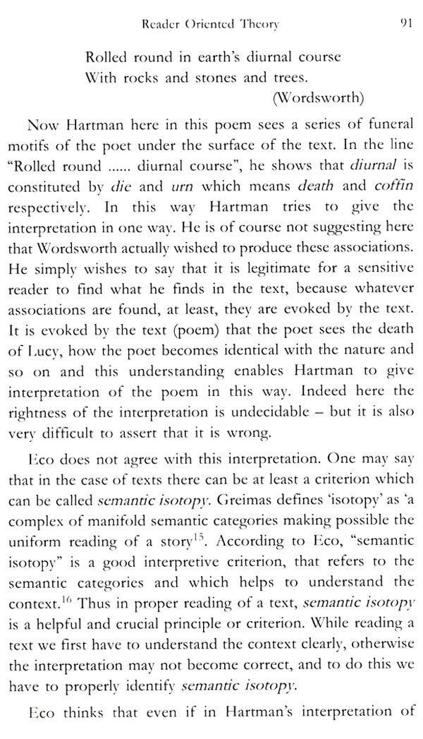 The purpose of this work is to bring out the importance and significance of interpretation which we perform almost every time and everywhere while facing any text whatever.