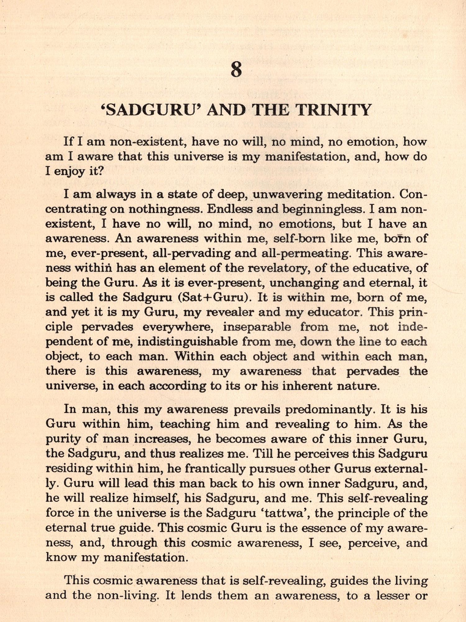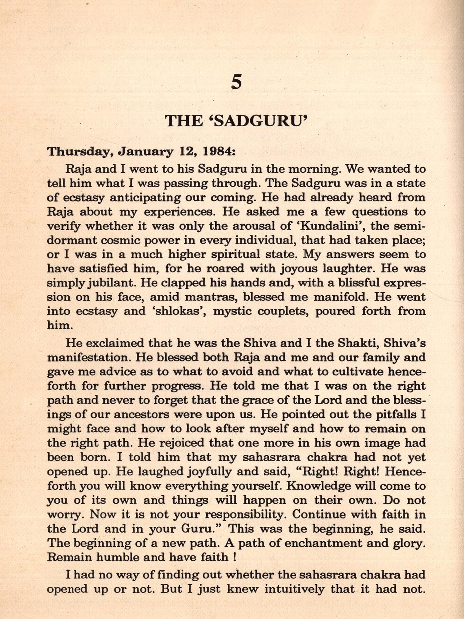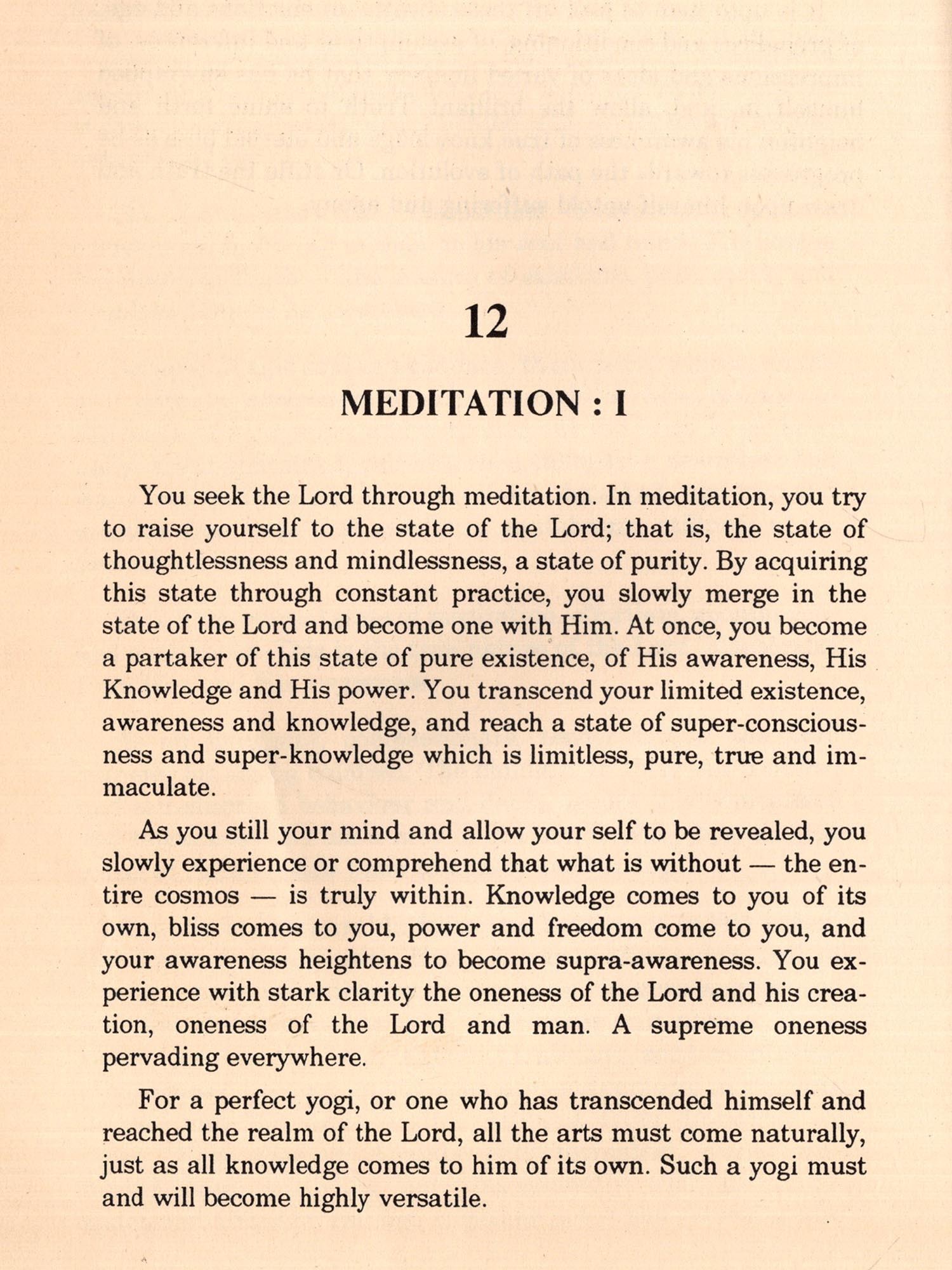 I had not read any scriptures prior to my experience outlined here nor had I any yearning at all for knowledge of the Divine Life was perfect for me. I needed no change. Desire for this or hankering for that was unknown to me.