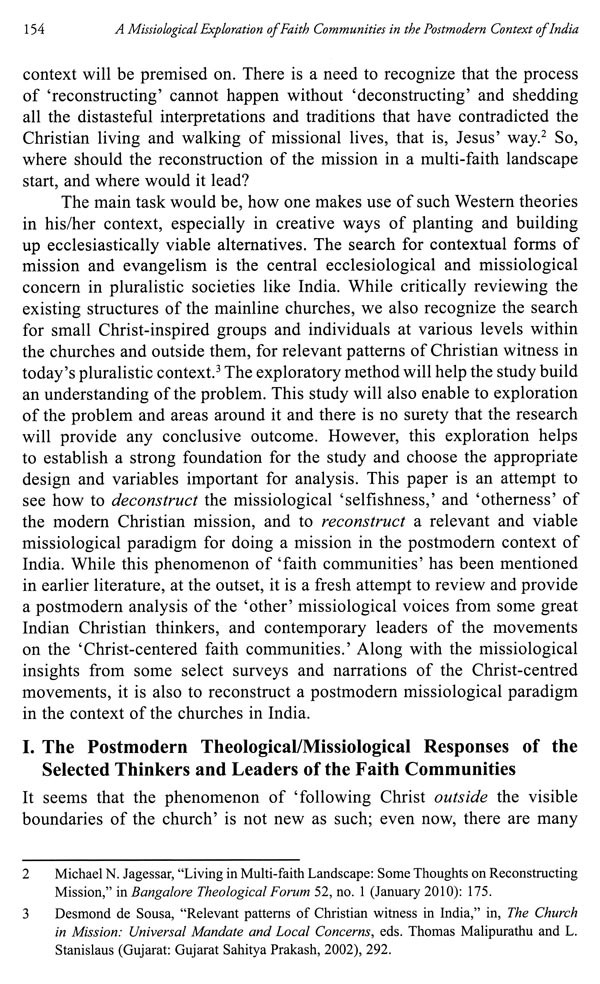Orentsani Shitrie, in her article: Revisiting the Lotha (Naga) Traditional Life for Fostering Unity explores the community's history to uncover examples of how to promote unity in the modern society. A. Jabesh, in his article: Christian Virtues of Faith, Hope, Love and Unity in the Life and Ministry of Ms. Betty R. Shelton provides a historical review of one of the pioneers of Christian missionary endeavours in Villupuram in Tamil Nadu. K. Vijayan, in his article: A Missiological Exploration of Faith Communities in the Postmodern Context of India explores the reconstruction of mission in the postmodern context and provides an alternative way of doing mission in the India today. Pranay Bin Hiyal, in his article: Exploring Integral Mission in India: The Role of Conversation in Overcoming Challenges and Seizing Opportunities illuminates the importance of integral missions in a pluralistic context like India. He uses genuine 'conversation' as a model for integral mission.