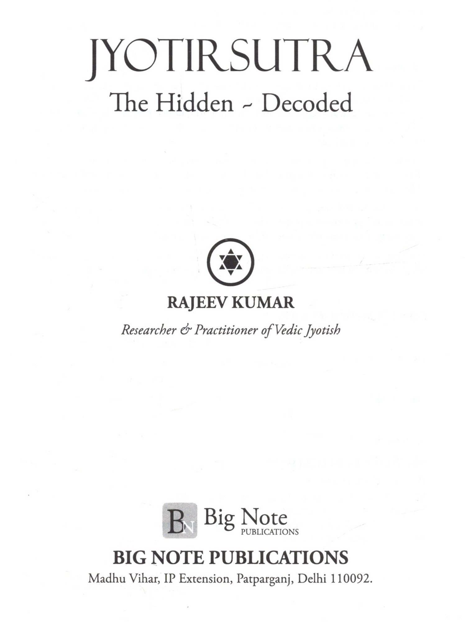 Jyotish, or Vedic astrology, is one of the world's most sophisticated systems for understanding time, karma, and human potential. This book presents the research of Shri Rajeev Kumar, distilled from ears of study, practice, and experience. Written for readers who wish to approach this vidya both as a discipline of study and as a tool for guidance, the book bridges researched sutras with contemporary insights, making the subject accessible while retaining its depth.