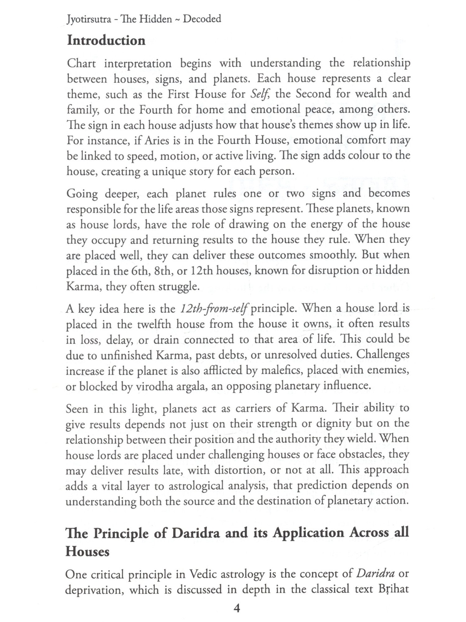 This book marks the first volume of the RK System of Vedic Astrology series, a research-driven body of work dedicated to unveiling hidden principles of Jyotish. While my carlier writings were part of a structured learning series meant to introduce and train students in the fundamentals, this series arises from a very different stream; one that flows from deep research, intuitive revelations, and the grace of the Gurus who have guided me across lifetimes. The sutras presented here are not simply collected knowledge. They are decodings principles that, to the best of my understanding, have not been previously in this form. Each sutra was meditation, and correlation, but more importantly, through the guidance of those teachers whose blessings continue to illuminate the path. I bow with gratitude to the Gurus of my past lives, whose subtle presence I feel in moments of clarity, and to the teachers and mentors of this life, whose encouragement and wisdom have helped me bring these insights into words. The RK System of Vedic Astrology is not just a collection of techniques; it is a way of looking at charts with fresh eyes and fearless inquiry. Each principle has been tested against lived experience and traditional wisdom, and where necessary, reinterpreted to unlock deeper truths. The aim of this book is not to replace what is already known, but to add new dimensions that expand our understanding of destiny, karma, and the journey of the soul. This is only the beginning. Many more volumes in this research series will follow, each dedicated to exploring new layers of astrology, whether through divisional charts, house interconnections, karmic flows, or subtle sutras that bridge philosophy with practical prediction. Together, they will form a body of work under the RK System that I hope will serve astrologers, students, and seekers for generations to come. As you read these pages, I invite you not only to learn but also to contemplate. For Jyotish is not merely about technique; it is about discovering the thread of consciousness that binds us to the cosmos. If even a single sutra here helps you see that connection more clearly, then this effort has fulfilled its purpose. With folded hands, I dedicate this book to the lineage of Gurus, past and present, without whose blessings such decoding would not have been possible.