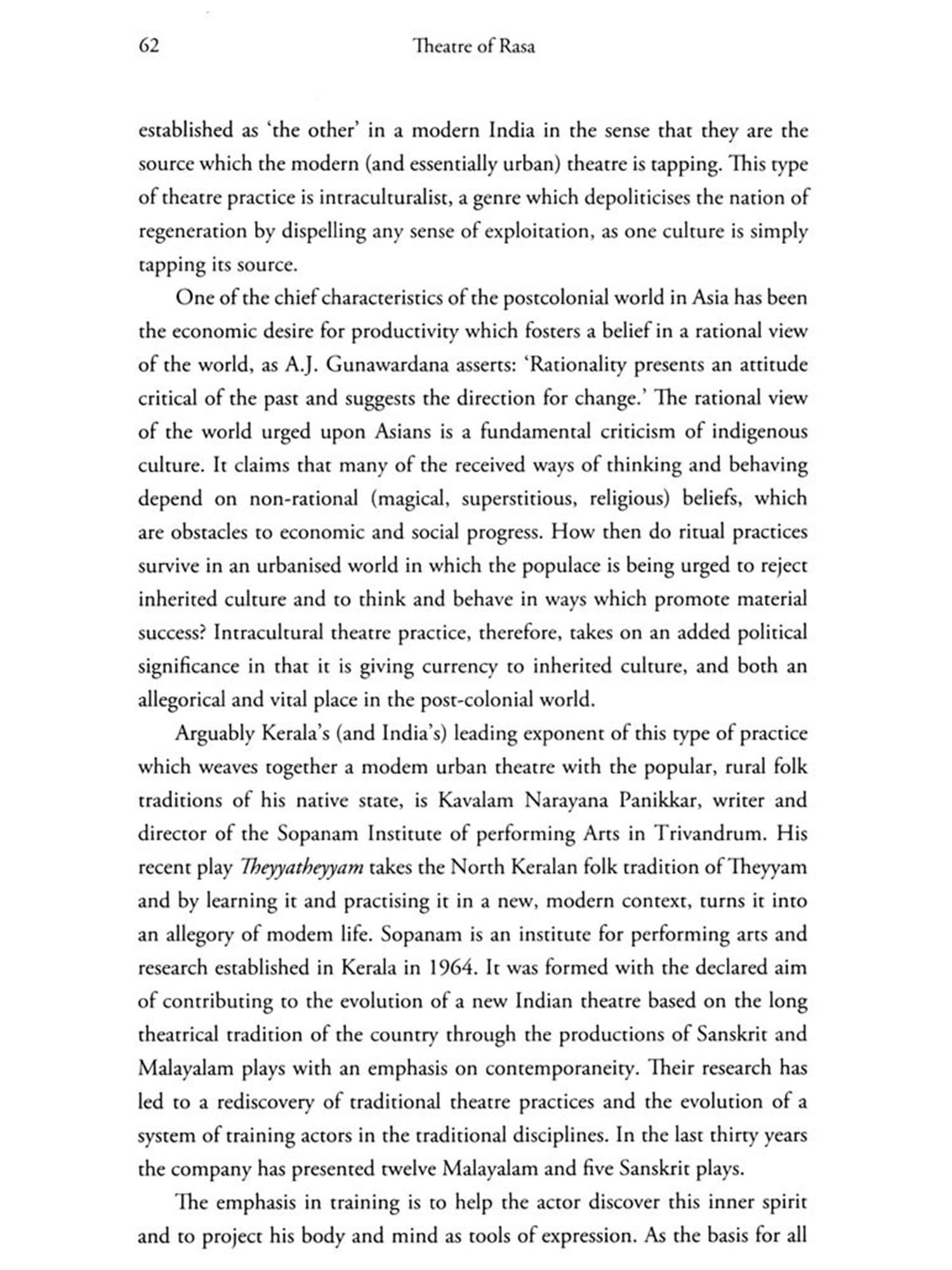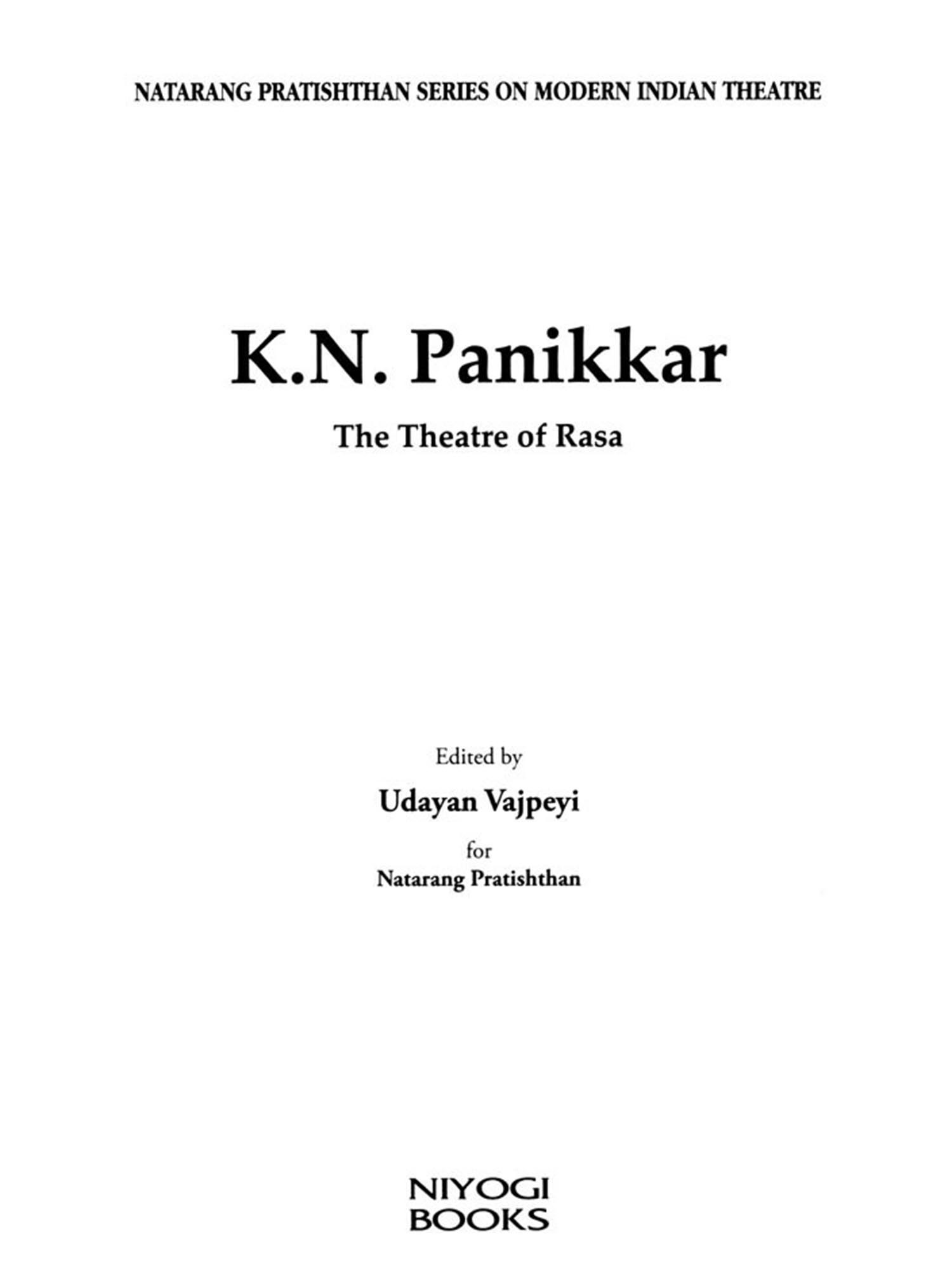 K.N. Panikkar: The Theatre of Rasa goes deeper into the styles and sources of Panikkar's theatre. It includes essays by some of India's finest theatre writers and thinkers, as well as a long conversation with this master theatre director and a detailed discussion on the production of Ottayan, one his renowned plays. This book will give an insight into not only the theatre of K.N. Panikkar, but into theatre as an art form within a broader framework.
