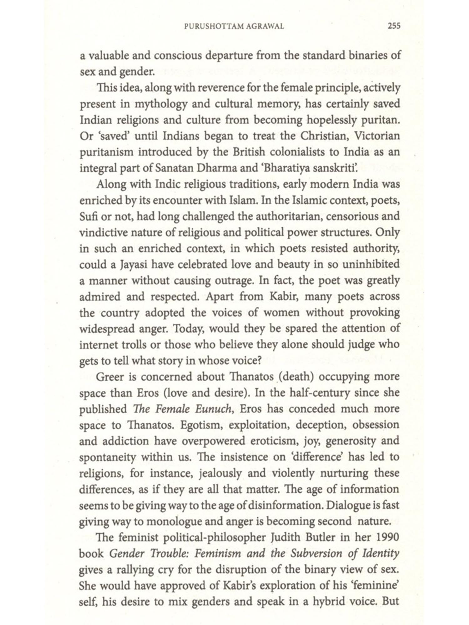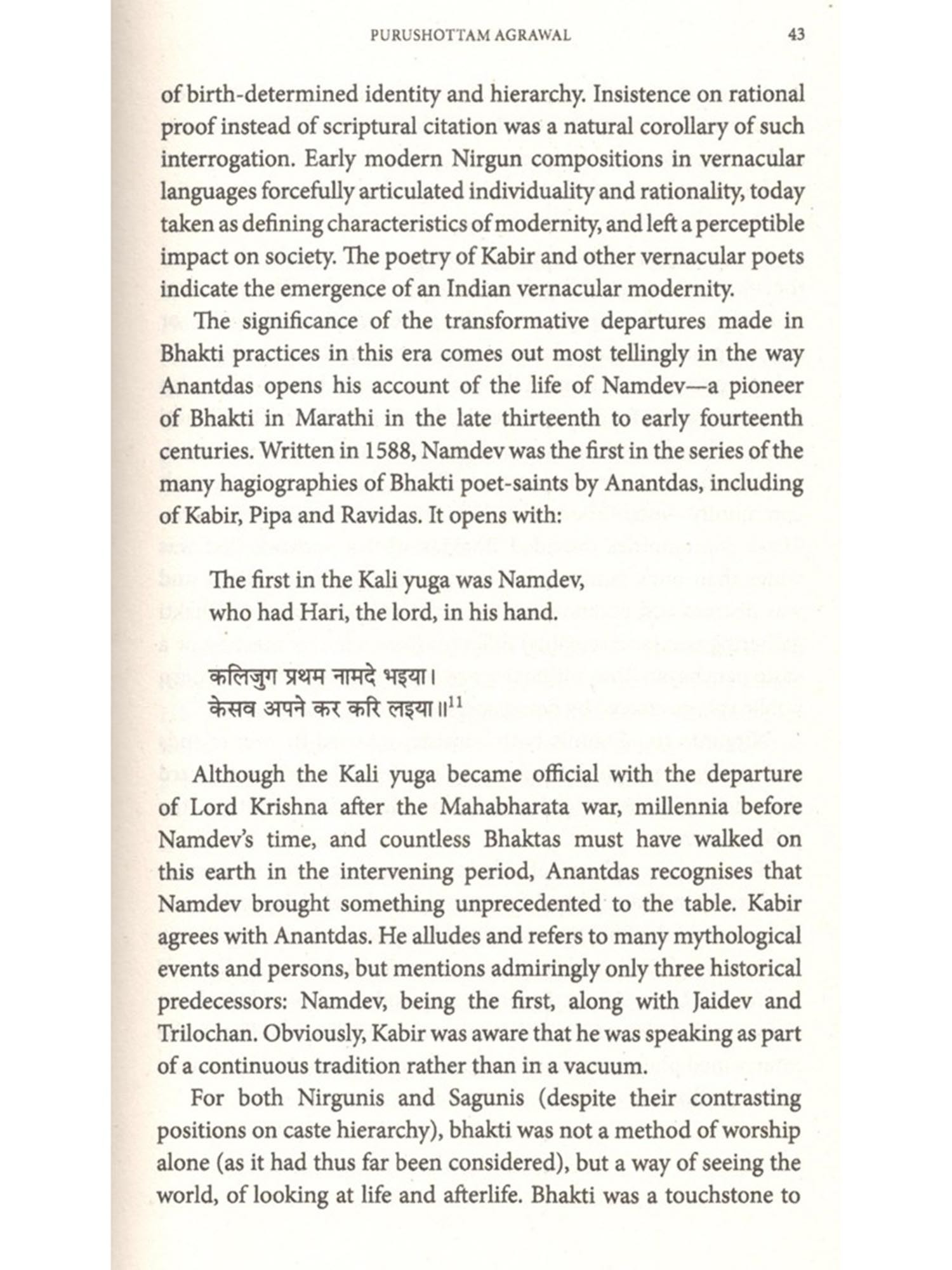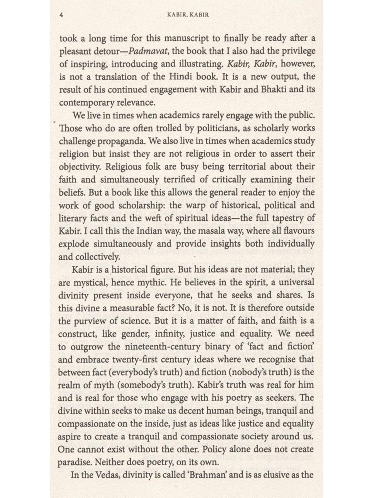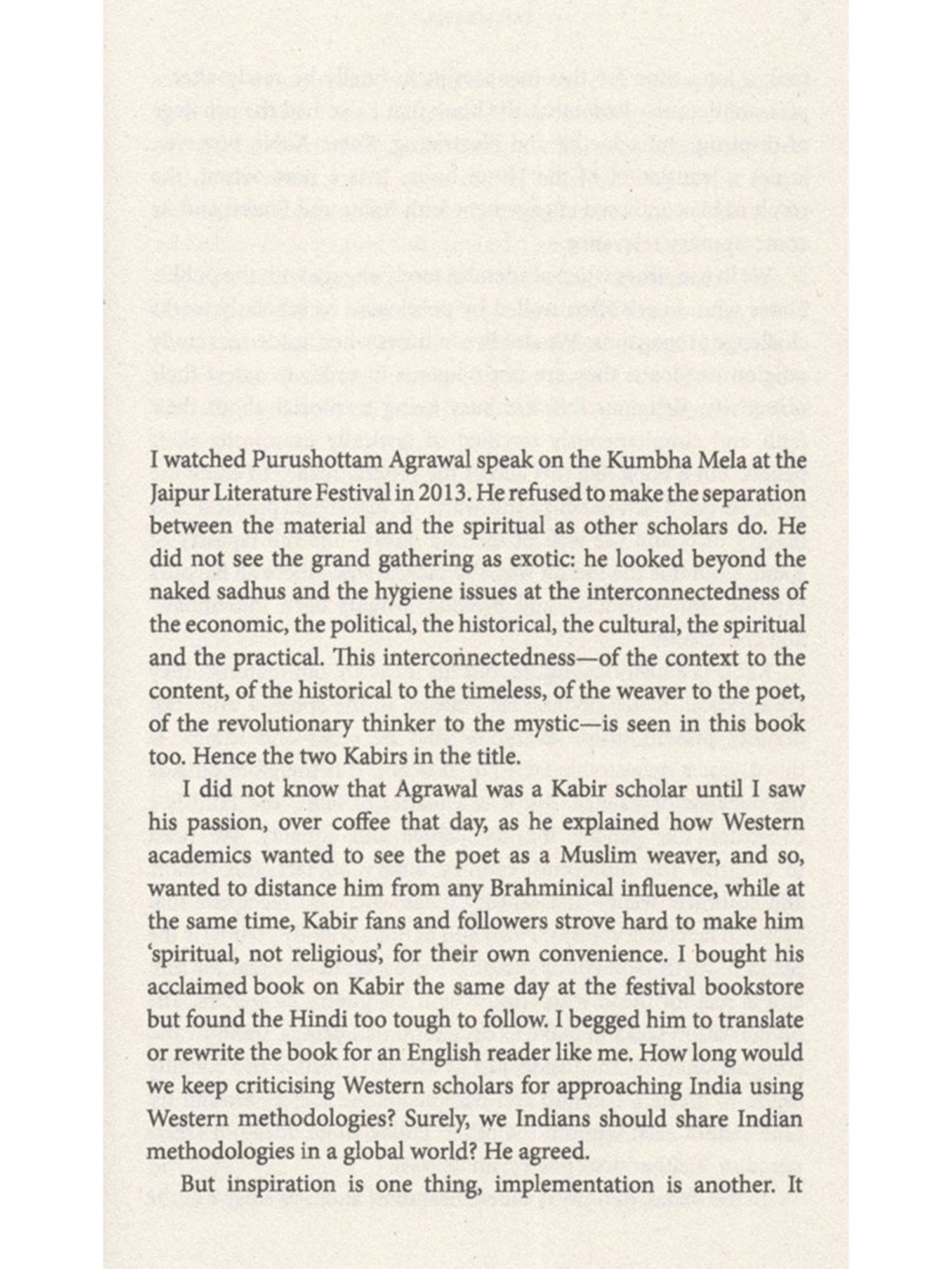 In today's world, polarised along the lines of religion, caste and race, Agrawal teases out the possibilities for balance and harmony that Kabir's imagination presents us with.