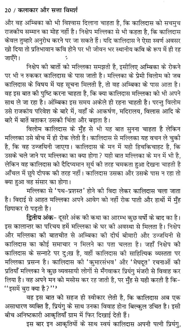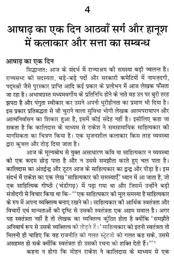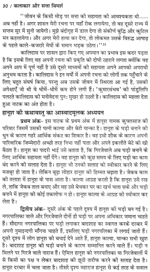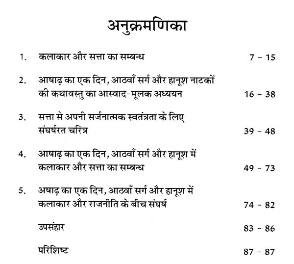 कलाकार और सत्ता के बीच सम्बन्ध में कलाकार अपनी अभिव्यक्ति की स्वतंत्रता के लिए सत्ता के समक्ष संघर्ष करता आया है। इसी विषय को केन्द्र में रखकर मोहन राकेश, सुरेन्द्र वर्मा और भीष्म साहनी के क्रमशः आषाढ़ का एक दिन, आठवाँ सर्ग तथा हानूश नाटकों का अध्ययन इस लघुशोध प्रबंध में किया गया है।