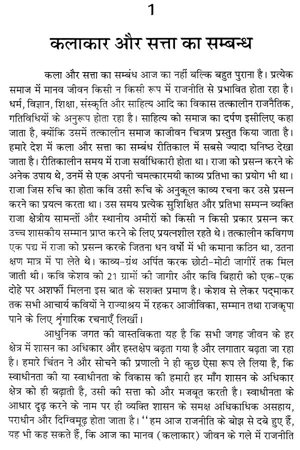 प्रथम अध्याय में कलाकार और सत्ता के बीच के सम्बन्ध पर प्रकाश डाला है।