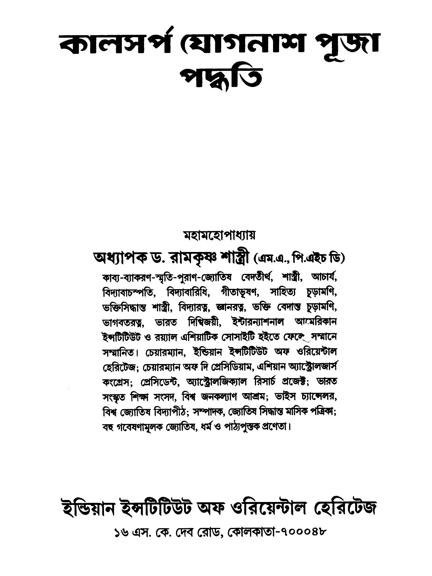 শ্রীশ্রী কালীপূজা পদ্ধতি- Sri Sri Kali Puja Paddhati- Tantroka Vidhina (Bengali)