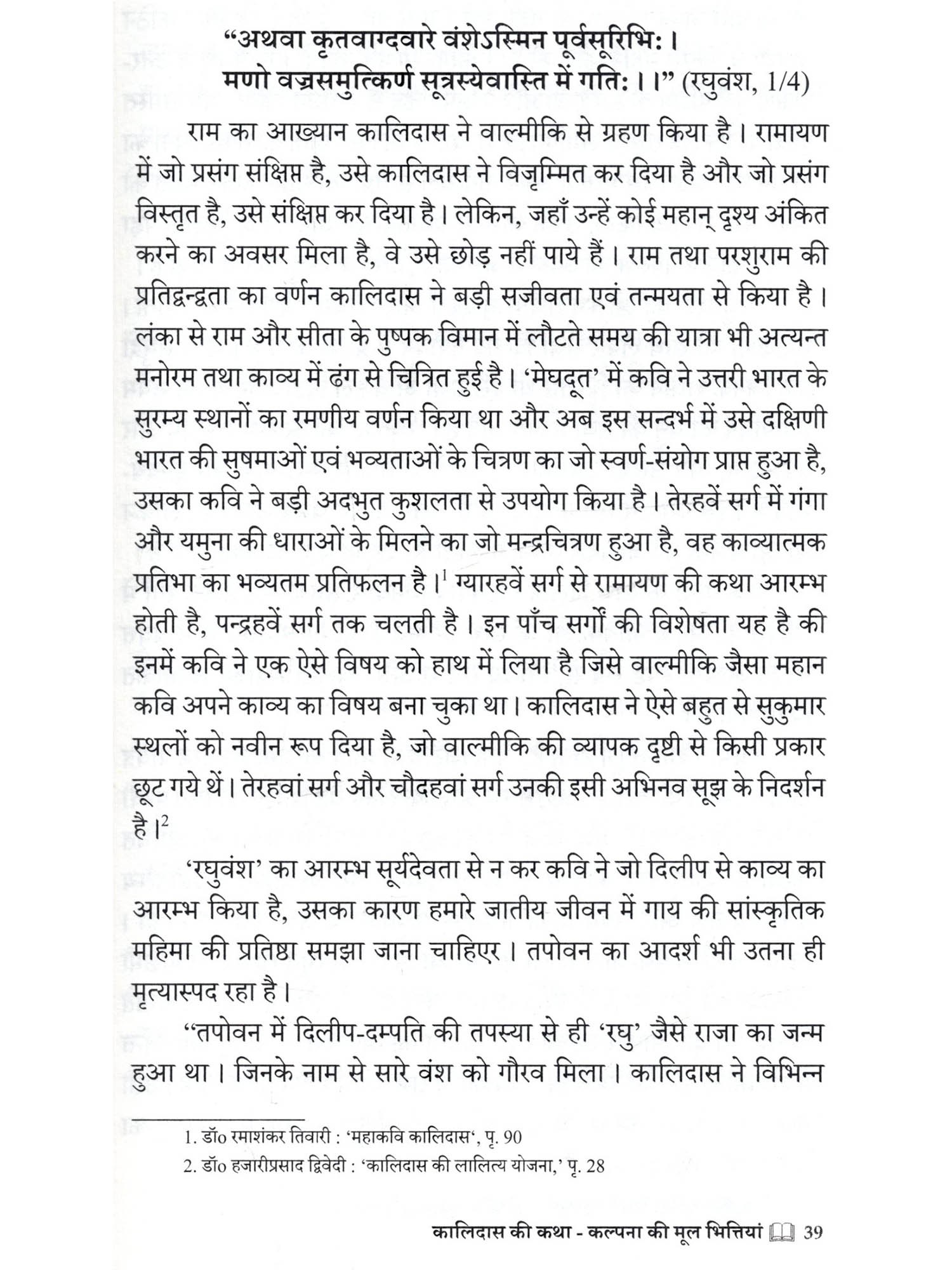 कालिदास के चुम्बकीय व्यक्तित्व का आकर्षण ही इतना सशक्त है की आबाल वृद्ध-वनिता सभी मुग्ध तथा आनन्द विभोर हो जाते हैं। शैशव में ही रघुवंश के दिवतीय सर्ग का पारायण किया था। उसका सस्वर पाठ मुझे कल्पना-लोक में ले जाता था। न मालूम कैसी सुंदर रही होगी वह गाय? कैसा भीषण होगा वह सिंह? तब से क्रमशः महाकवि कालिदास की अमर-कृतियों से सम्पर्क बढ़ता ही गया। स्नातकोत्तर परीक्षा में सम्मिलित होने के लिये संस्कृत के महाकव्यों तथा नाटकों का अनुशीलन इष्ट था। इसी सन्दर्भ में आचार्य अयोध्या प्रसाद सिंह जी के वैदुष्यपूर्ण व्याख्यानों को हृदयंगम करने का सौभाग्य प्राप्त हुआ। विशेषतः कालिदास तथा भवभूति के तुलनात्मक विवेचन से जिज्ञासा बढ़ती ही गई और इसका समग्र श्रेय विद्वद्वरेण्य गुरवर को है। आज जबकि जीवन का पूर्वार्ध पार कर चुका हूँ "कालिदास की कथा कल्पना' रह-रह कर कचोटती रहती है और उसी दुर्निवार एषणा का यह परिणाम है कि महाकवि के निमित्त भावनाओं के फूल चढ़ाने बैठा हूँ।