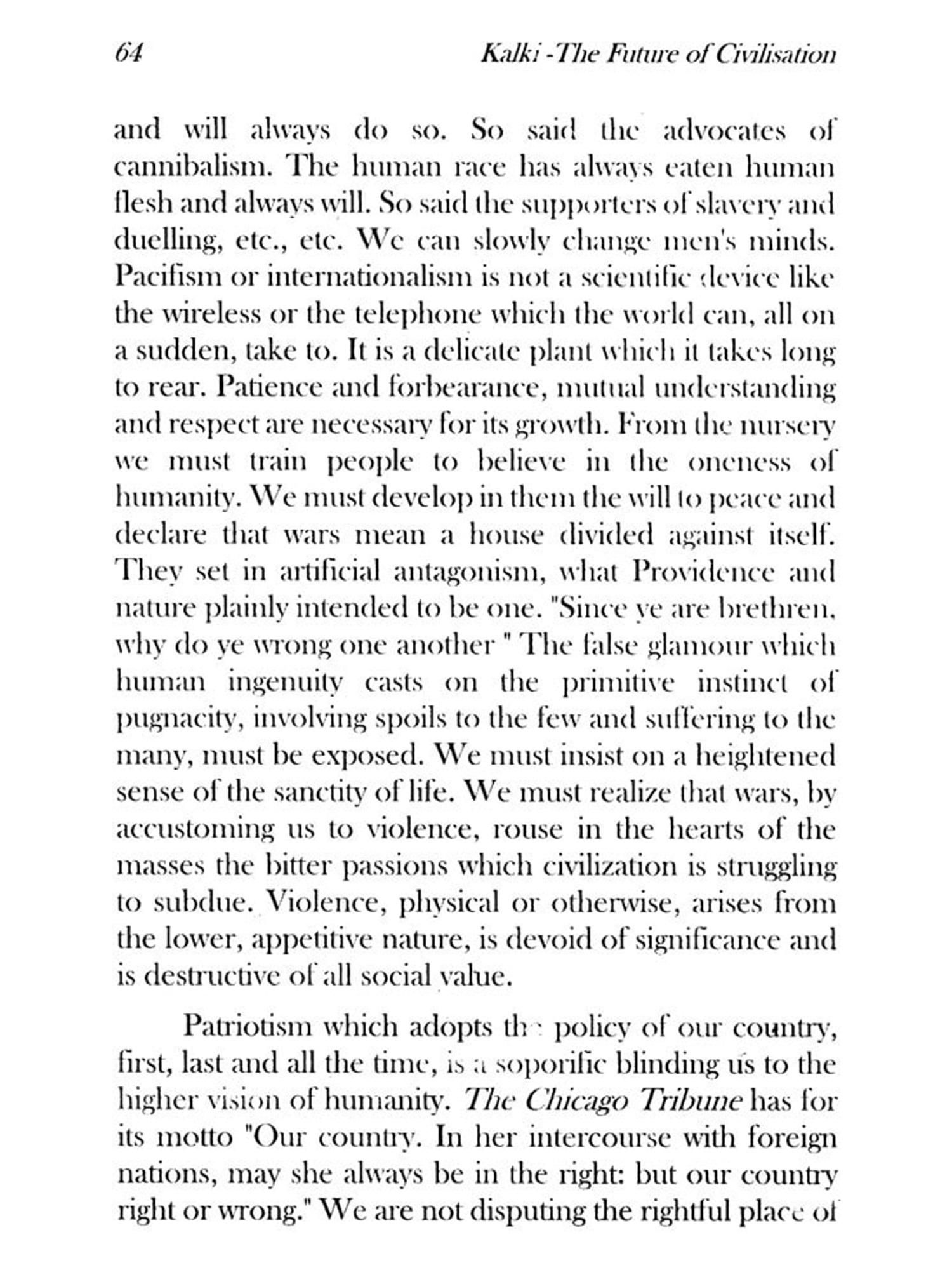 CIVILIZATION today seems to be passing through one of its periodic crises. The world is casting off its old garments. Standards, aims, arid institutions which were generally accepted even a generation ago are now challenged and changing. Old motives are weakening and new forces are springing up. Anyone who has an insight into the mind of the age is vividly conscious of its restlessness and uncertainty, its dissatisfaction with the existing economic and social conditions and its yearning for the new order which is not yet realized. All this confusion of thought and unstable enthusiasms for ill-defined ideals show that humanity is about to take a new step forward.