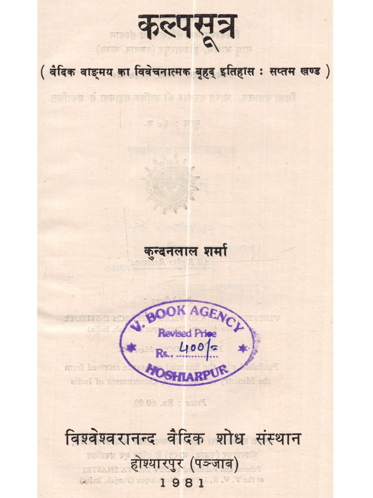 कल्पसूत्र (वैदिक वाङ्मय का विवेचनात्मक बृहद् इतिहास : सप्तम खण्ड): Kalpasutra (Vaidika Vanmaya Ka Vivecanatmaka Brhad Itihasa: Saptama Khanda)- An Old and Rare Book