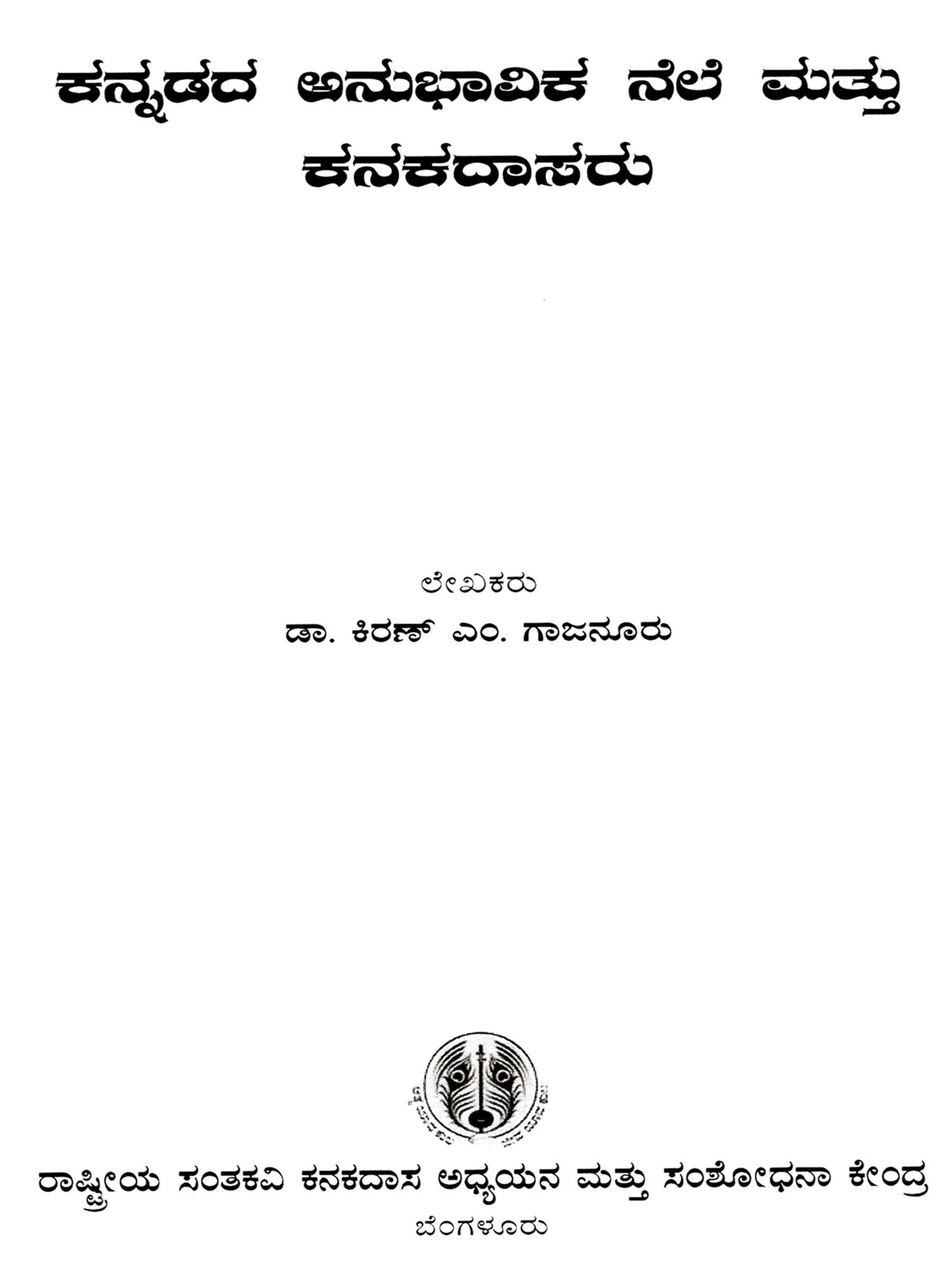 ಕನಕದಾಸರ ಕೃತಿಗಳ ಭಾಷೆ ಮತ್ತು ಶೈಲಿ: Language and Style of Kanakadasa's Works- Research Work (Kannada)