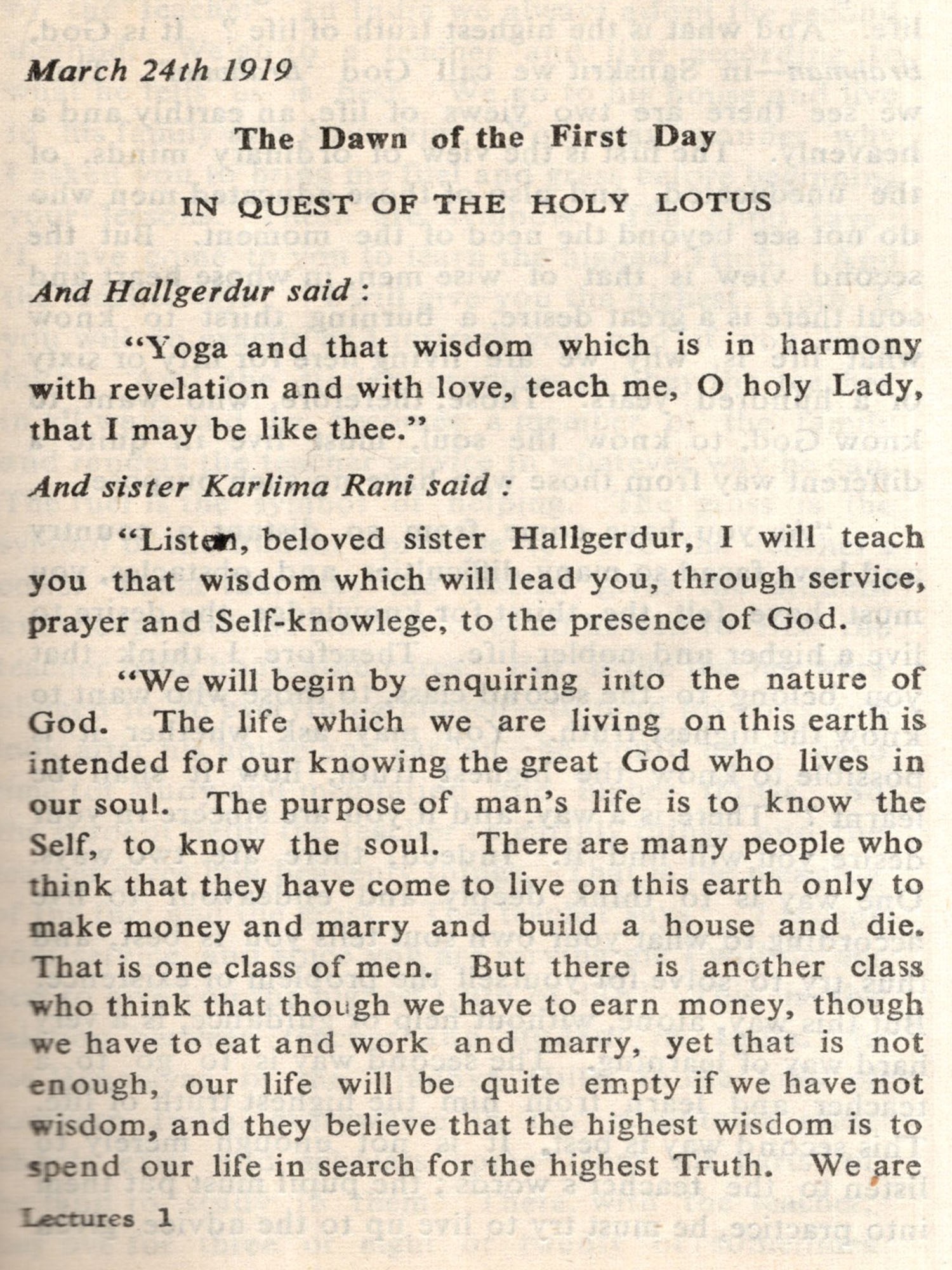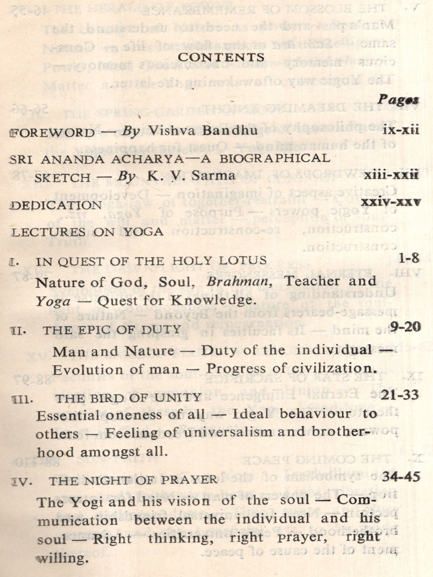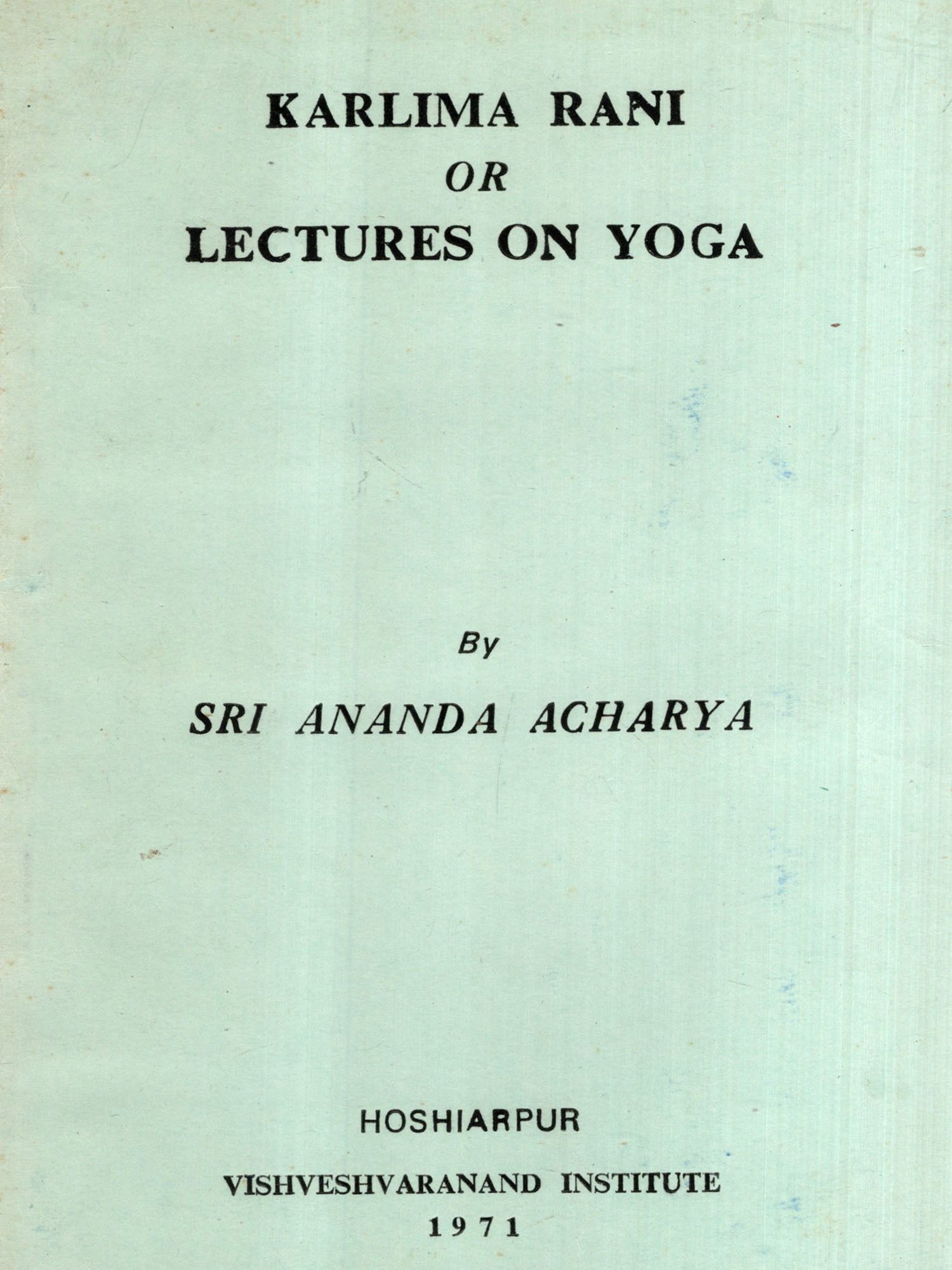 In his letter dated February 11, 1970, Mr. Beer wrote to us as follows: "You will have understood that my chief aim in life is to preserve and get printed and distributed the wonderful writings of the Swami Sri Ananda Acharya who came to Norway in 1914 and lived here up to 8th May, 1945 (when he passed away). He wrote a great many books, most of which are out of print. To get them all re-published and to get his last messages-poems, revelations of eternal truth and beauty to preserve these and bring them out to mankind has been my great hope and endeavour." Further on, after referring to a Norwegian friend of his having enabled him, through financial help, to take up the publication of the Swami Ji's book Life and Nirvana, he proposed to us that he might send to us a few hundred copies of that book so that we might sell the same in India and, instead of sending any money to him in Norway, credit the entire sale proceeds to a separate Fund to be utilised by the Institute towards publishing some other works of the Swami Ji. As this proposal was in consonance with the aims and objects of our Institute in respect of the proper interpretation and wide promulgation of the universal teachings of the ancient Indian sagas, we were, naturally, too glad to accept this proposal and assured Mr. Beer that we would be extending our full co-operation in furthering the said objective. Mr. Beer has since been pleased to send us, in the first instance. 200 copies of the said publication and has contributed one half of the cost of production of the present book, Karlima Rani or Lectures on Yoga with which, we have the pleasure to announce, our above-mentioned Sri Ananda Acharya Universal Series is being started.