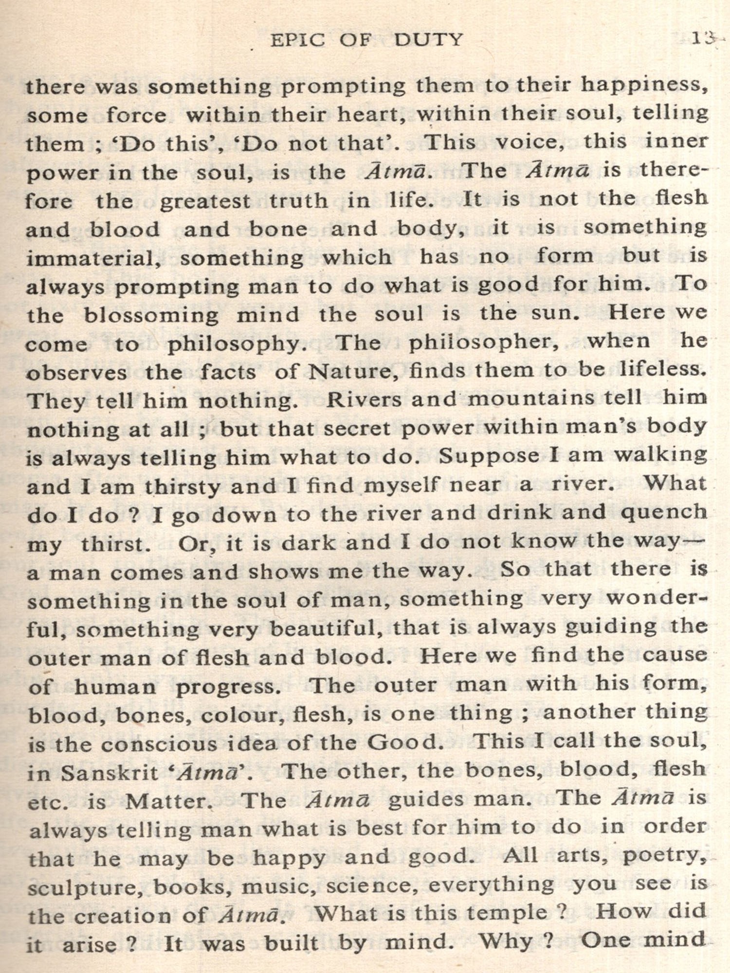 In 1957, our Institute published a work entitled Spiritual Talks, being a collection of extracts arranged under thirty-six topical titles, from the late Swami Sri Ananda Acharya's four major works, to wit, Karlima Rani, Kalkaram, Arctic Swallows and Yoga of Conquest. These extracts effectively served the purpose of introducing to the Indian readers the spiritually attuned writings of that Indian sage who had chosen to live and work during the latter half of his life in far off Norway. Every page of his voluminous writings is redolent with the lofty idealism of the Indian sages of yore. We are glad that our Institute has now been able to bring out some of the works of the Swami Ji in their full form. It is to be hoped that the Institute will be able to continue its efforts in the direction of publishing the remaining works of the Swami Ji which, as available in English, number about two dozen. Indeed, it is in view of this objective that the Institute has decided to start a new spiritual cultural series, under the caption of Sri Ananda Acharya Universal Series and gradually to issue the works of the Swami Ji as separate volumes in this Series.
