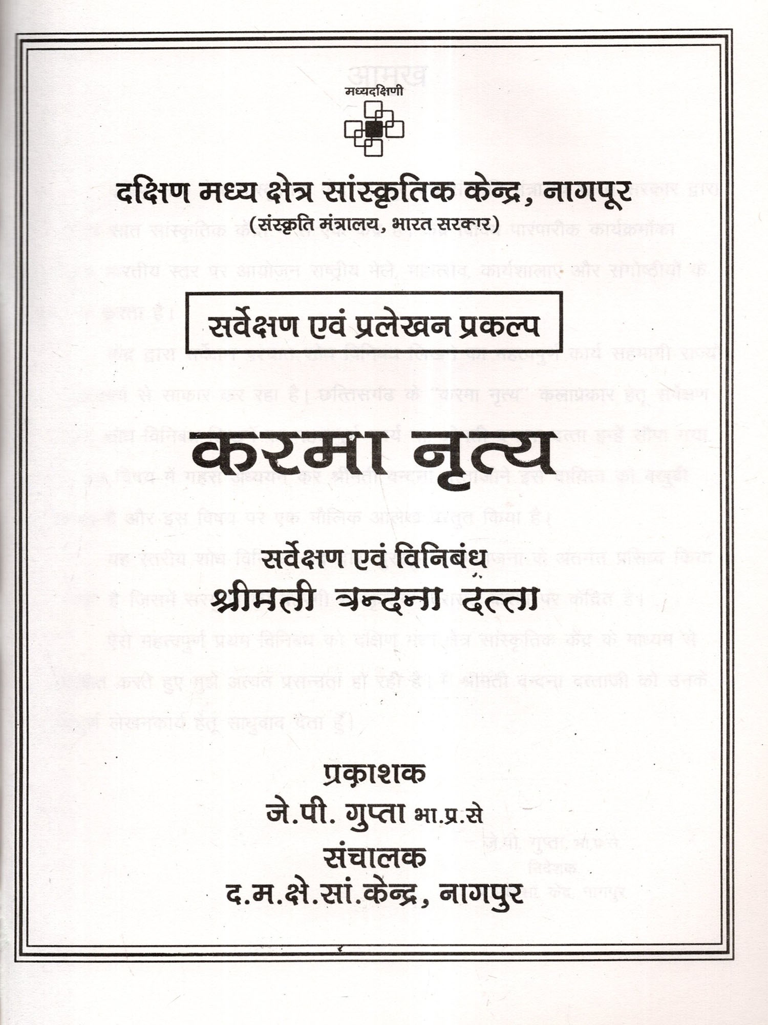 Publisher: South Central Zone Cultural Centre, Nagpur