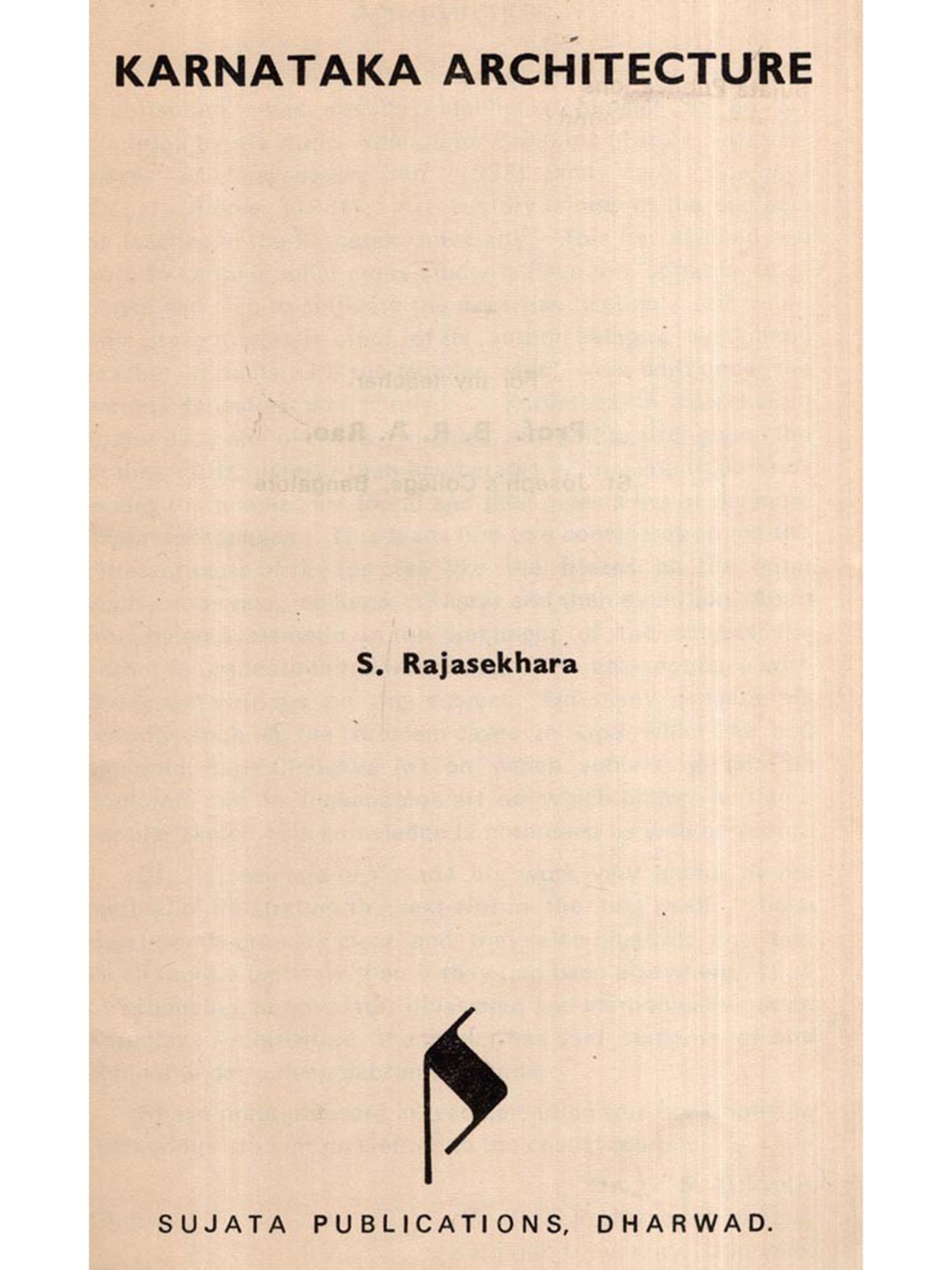 Dr. S. Rajasekhara, the author of this work on Karnataka Architecture, has already established himself as an art historian by his works Holalgundi Paintings (1982), Master-pieces of Vijayanagara Art (1983) and Early Chalukya Art at Aihole (1984). Art History is one of the subjects he teaches in the Karnatak University. This has enabled him both to know in what areas students have no suitable text-books and also to cultivate the expertise to supply this want, This present work is proof of its author being a systematic teacher. It deals with the temples which were built under the various dynasties which ruled in Karnataka in succession Under each one of these dynasties, the author first gives the outline of its history, then enumerates all the important sites where the temples are found and then gives a list of the more important temples This leads him to a consideration of the different parts of the temples like the friezes on the outer walls, doorways, ceilings, sikharas and their evolution. Apart from being systematic in the treatment of the subject, the author is UpToDate in his information. He has kept pace with the recent writings on the subject. On many aspects his writings such as the Arvalem caves in Goa which he had explored, Early Chalukya Art on which subject he got his doctorate and on Vijayanagara art on which he has written a popular sketch. his knowledge is both deep as well as sound.